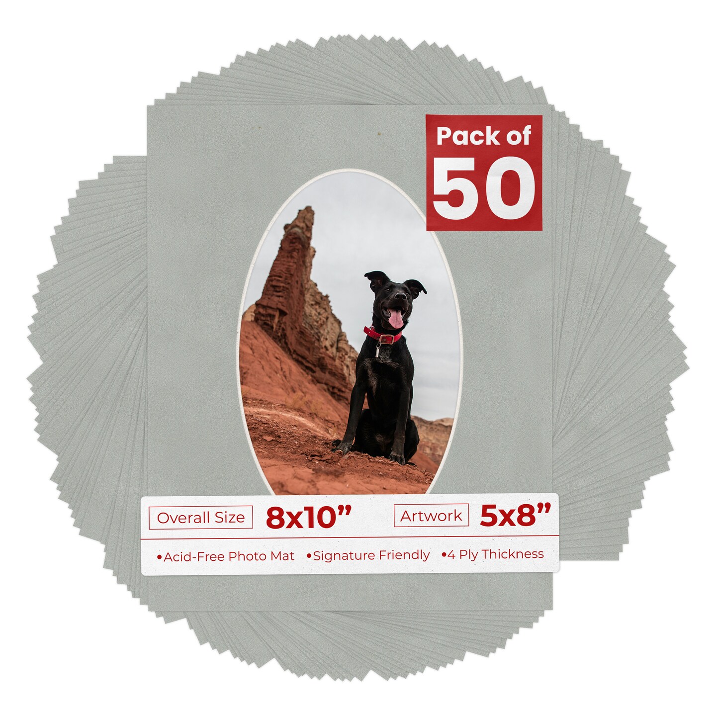 Light Grey Suede Mat Board for 8x10 Frames - Oval Opening for 5x8 Photos