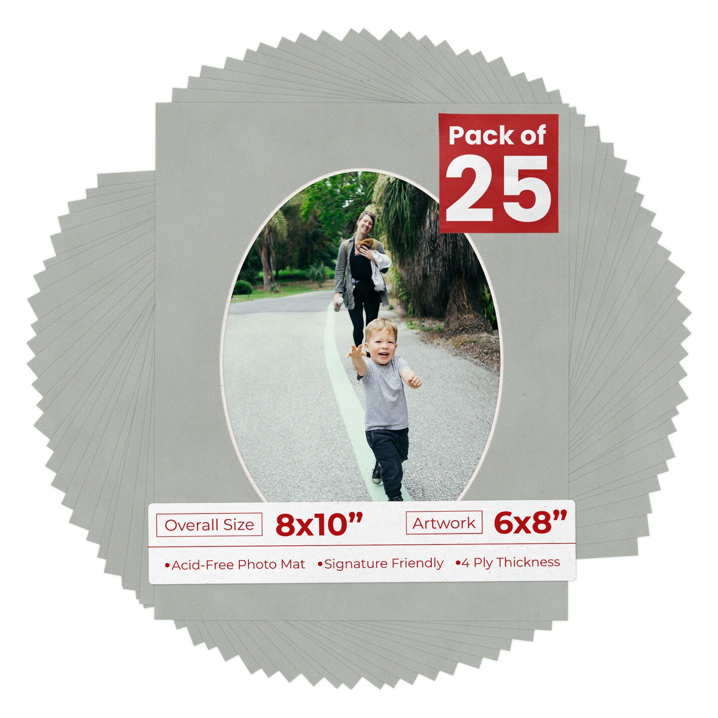 Light Grey Suede Mat Board for 8x10 Frames - Oval Opening for 6x8 Photos