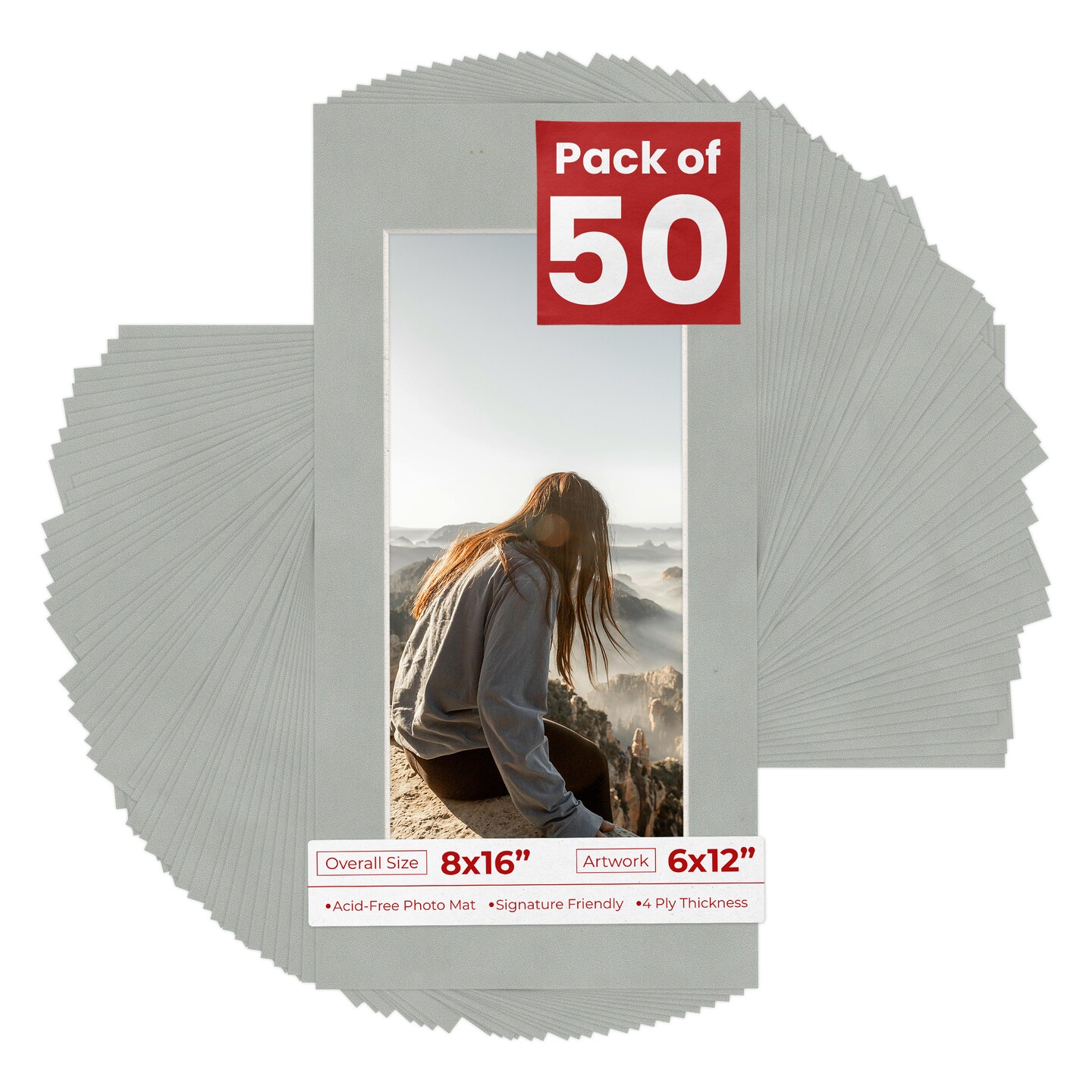 Light Grey Suede Mat Board for 8x16 Frames - Fits 6x12 Photos