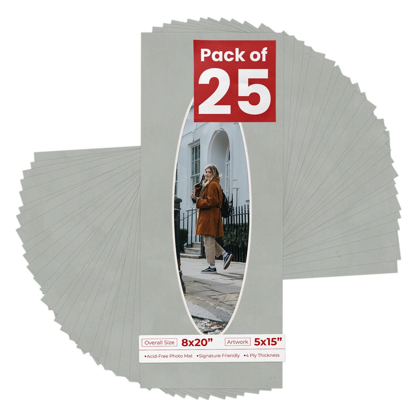 Light Grey Suede Mat Board for 8x20 Frames - Oval Opening for 5x15 Photos