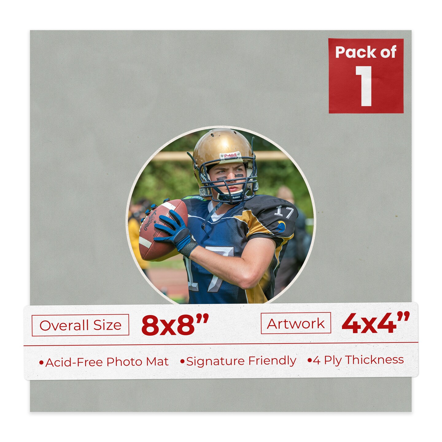 Light Grey Suede Mat Board for 8x8 Frames - Circle Opening for 4x4 Photos