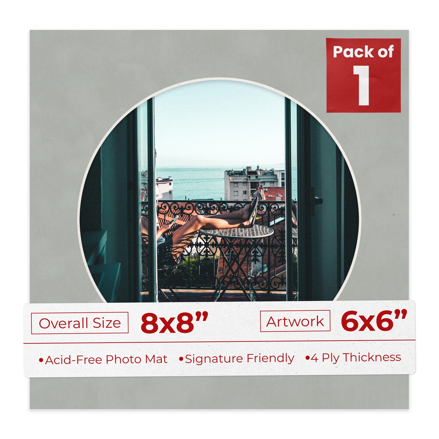 Light Grey Suede Mat Board for 8x8 Frames - Circle Opening for 6x6 Photos
