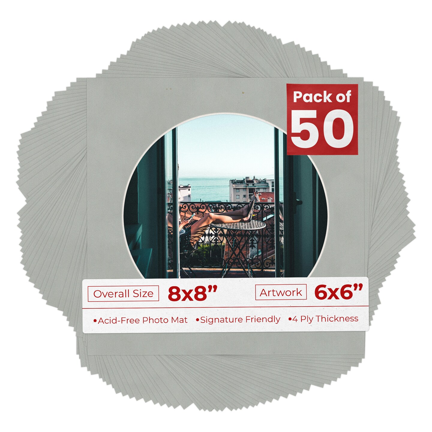 Light Grey Suede Mat Board for 8x8 Frames - Circle Opening for 6x6 Photos