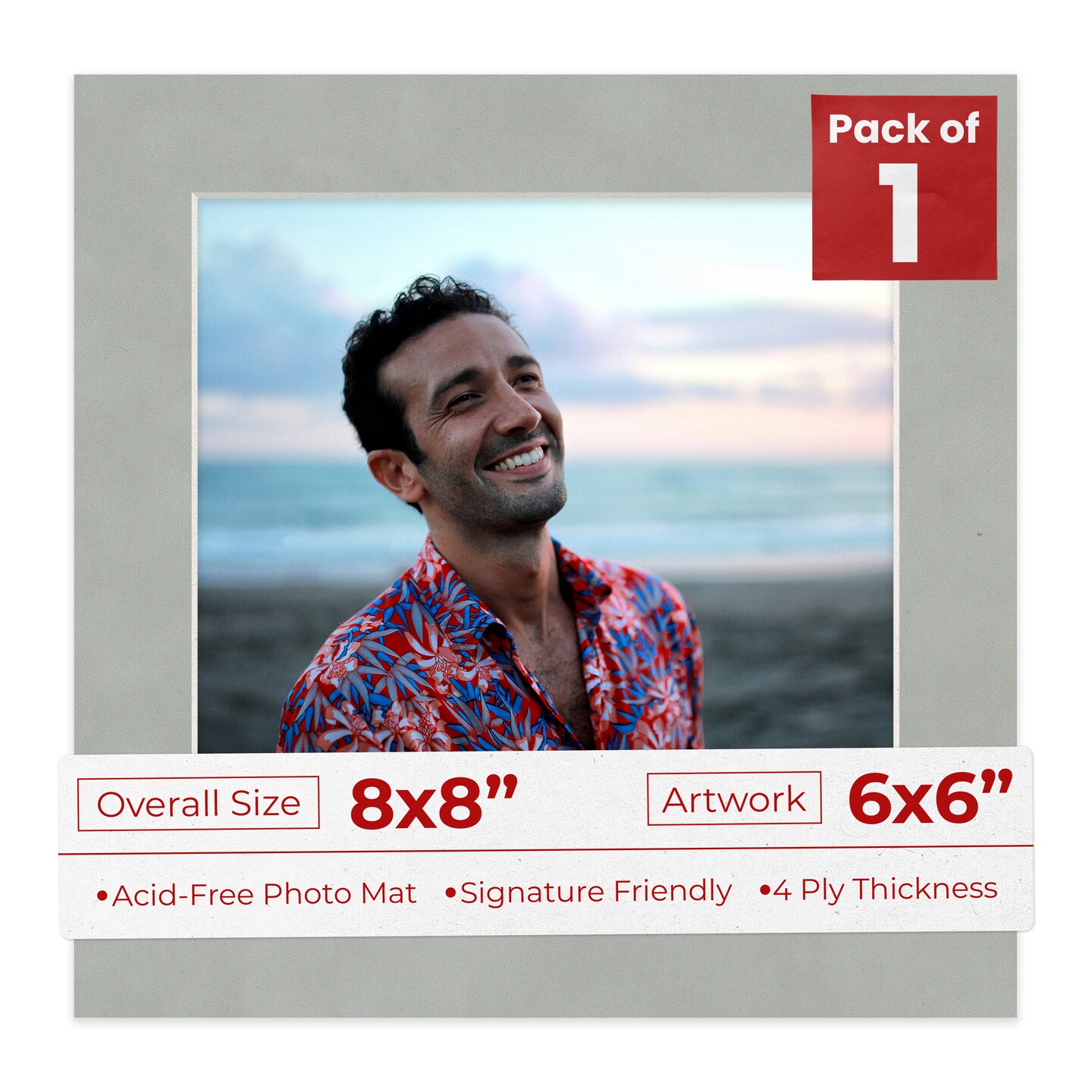 Light Grey Suede Mat Board for 8x8 Frames - Fits 6x6 Photos