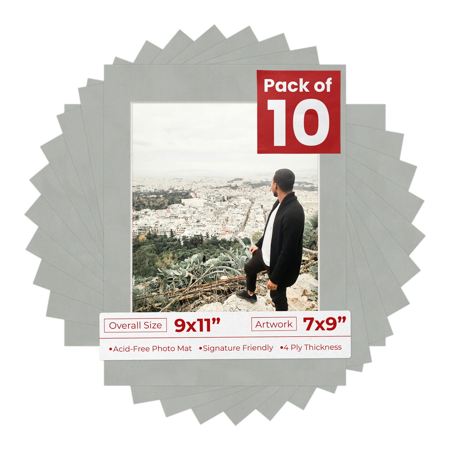 Light Grey Suede Mat Board for 9x11 Frames - Fits 7x9 Photos