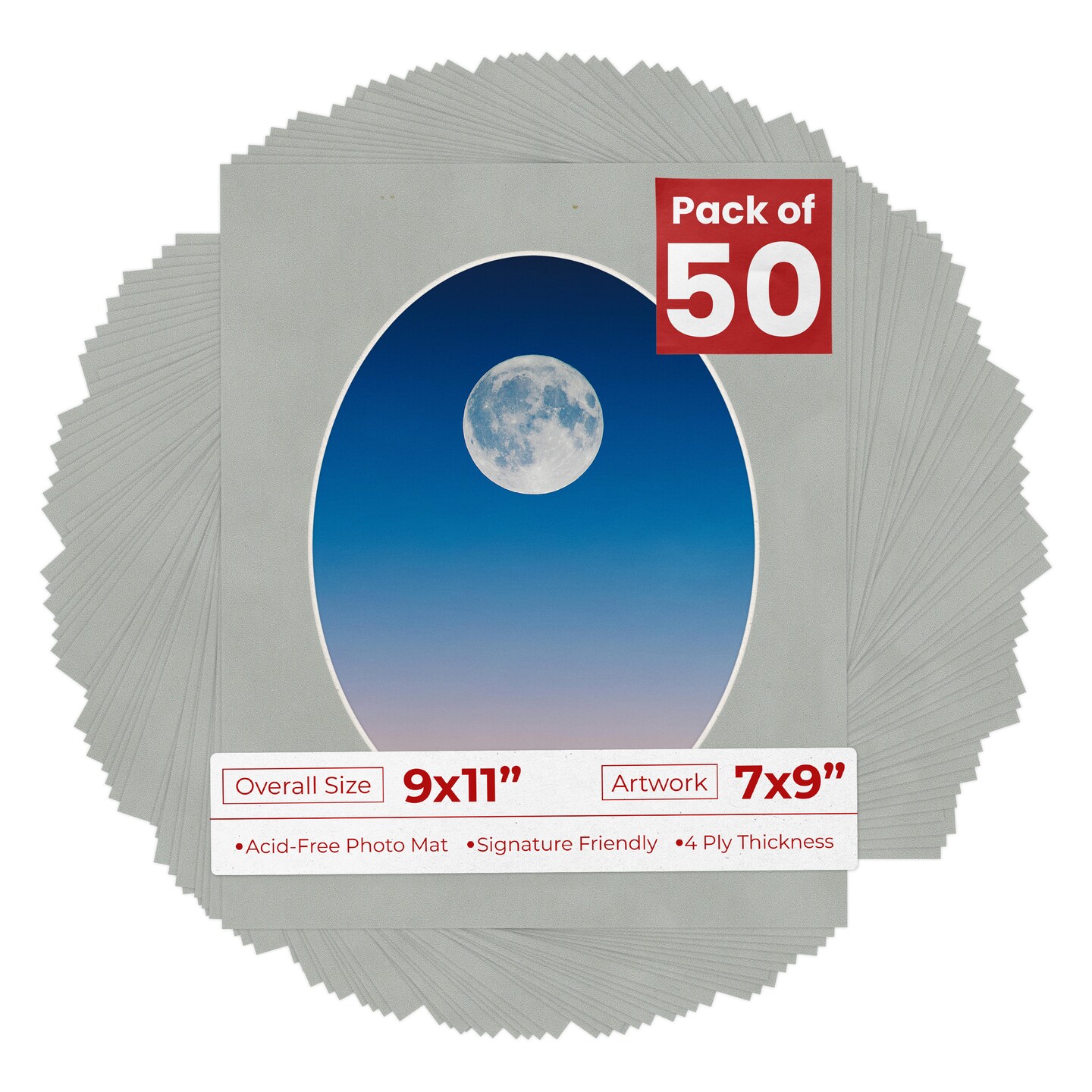 Light Grey Suede Mat Board for 9x11 Frames - Oval Opening for 7x9 Photos