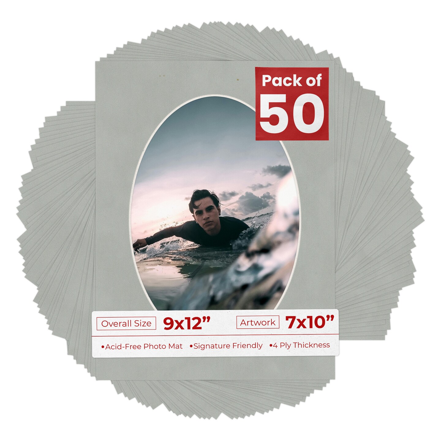 Light Grey Suede Mat Board for 9x12 Frames - Oval Opening for 7x10 Photos