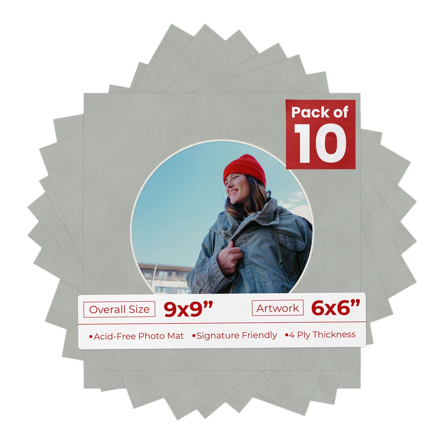 Light Grey Suede Mat Board for 9x9 Frames - Circle Opening for 6x6 Photos
