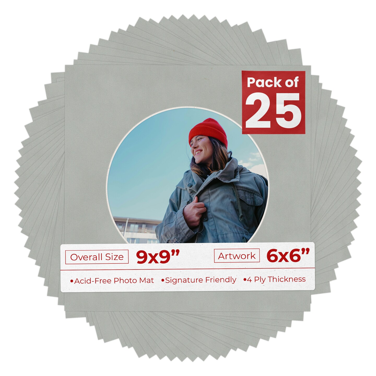 Light Grey Suede Mat Board for 9x9 Frames - Circle Opening for 6x6 Photos