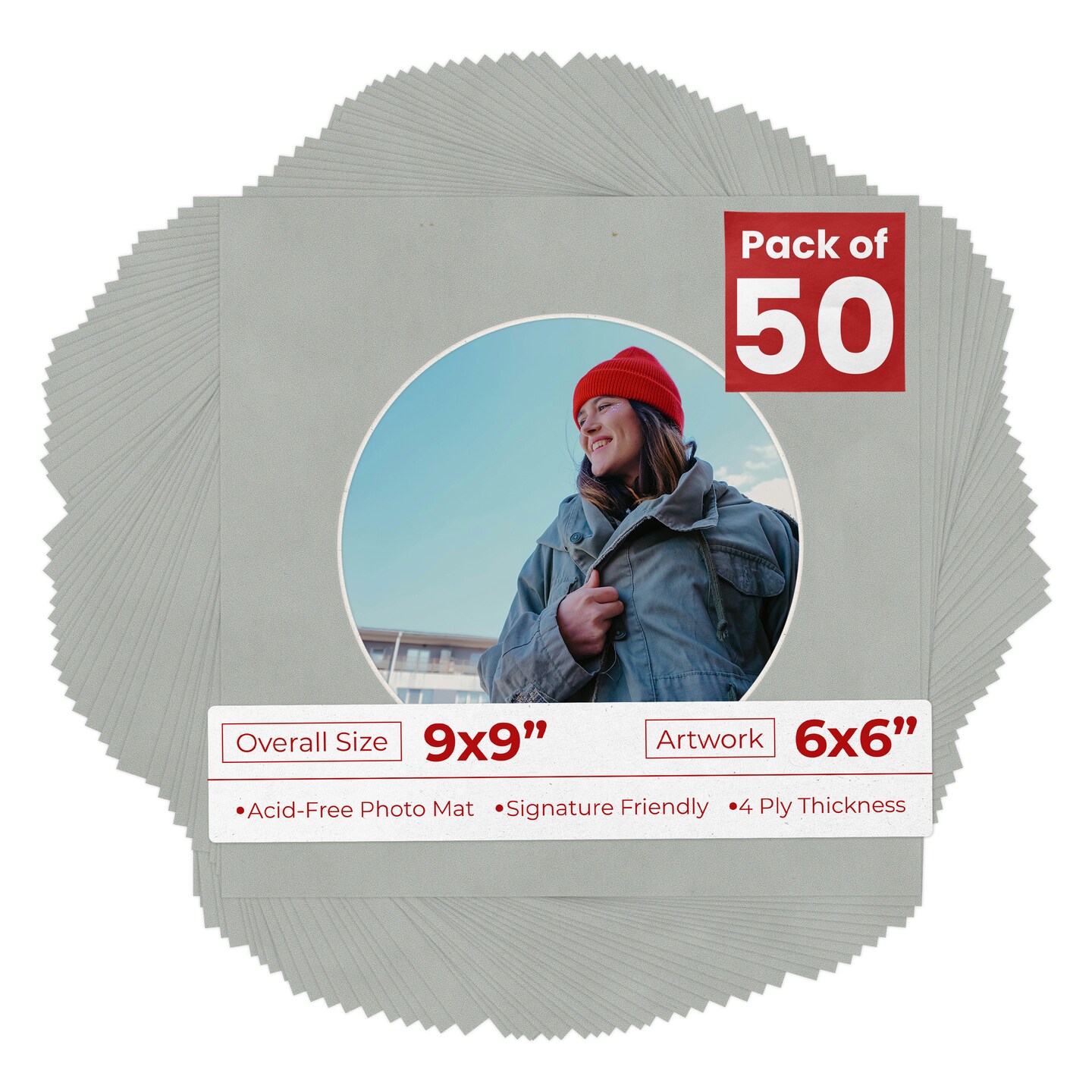 Light Grey Suede Mat Board for 9x9 Frames - Circle Opening for 6x6 Photos