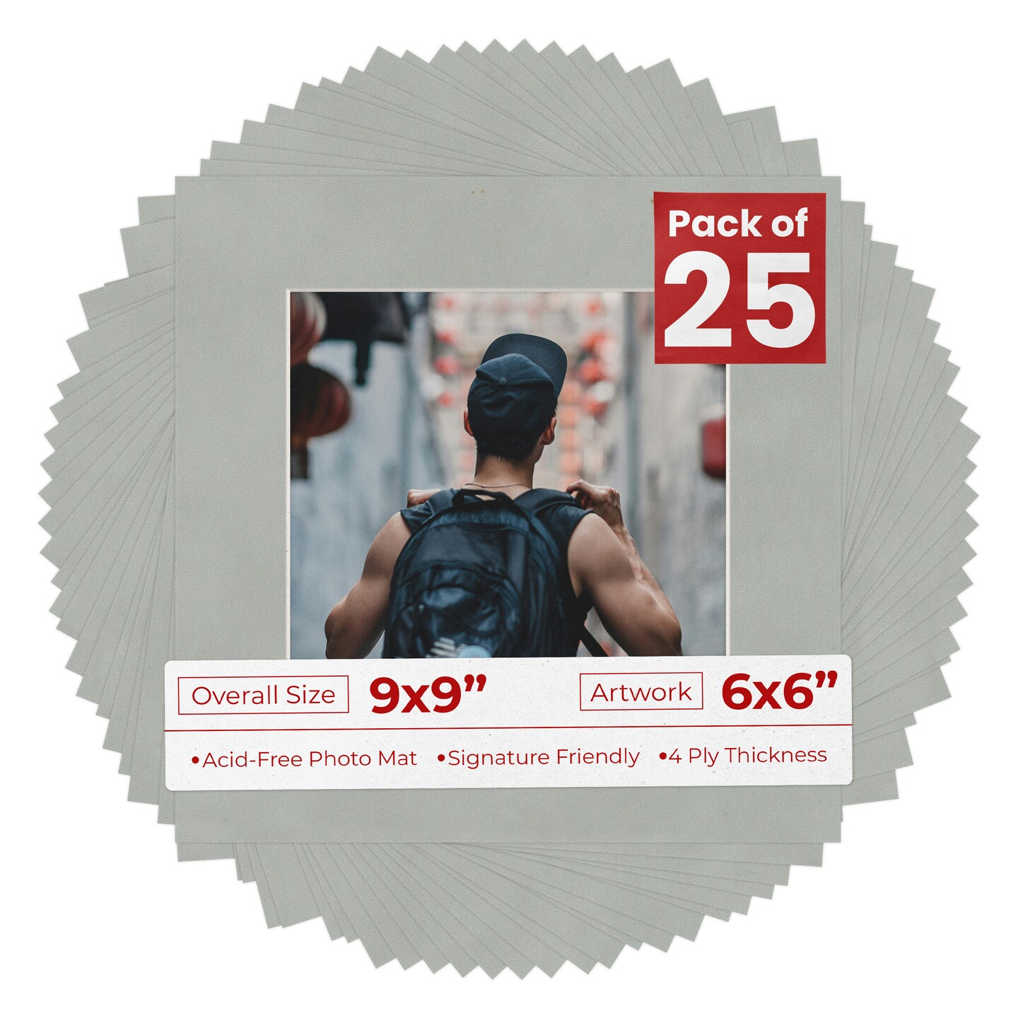 Light Grey Suede Mat Board for 9x9 Frames - Fits 6x6 Photos