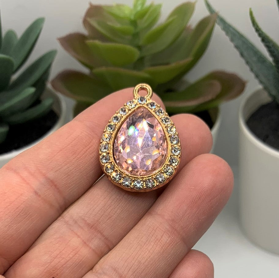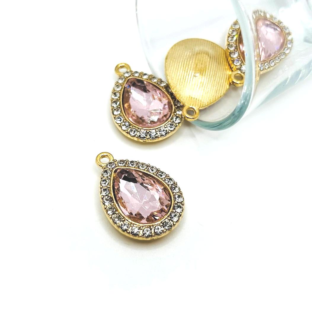 Light Pink and Diamond Rhinestone Pendants, 30x21mm