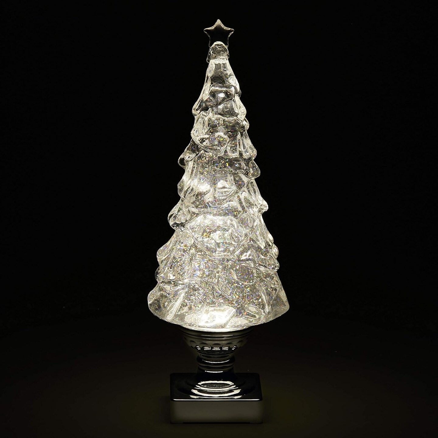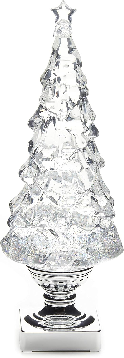 Light Up Christmas Tree Snow Globe with Glitter, 15.25", White