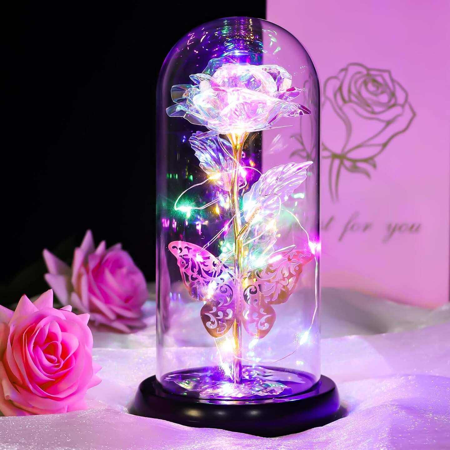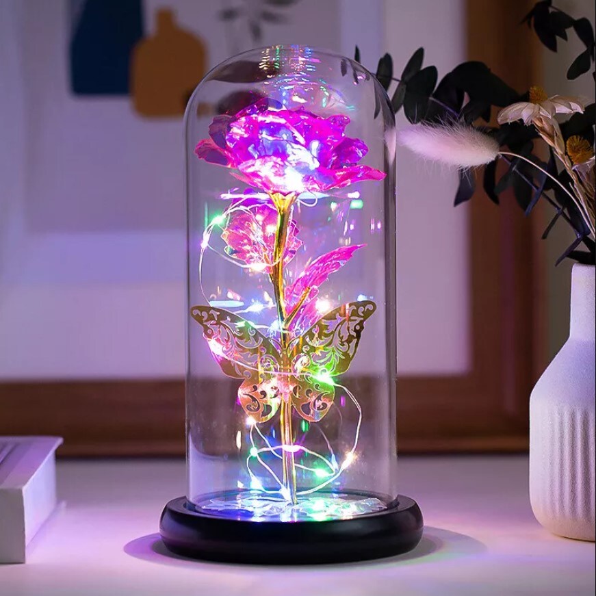 Light Up Rose in A Glass with Butterfly Birthday Gift for Woman Mothers Day Flowers Gift for Mom Rose Flower Gift for Her Anniversary Gift Preserved Flowers