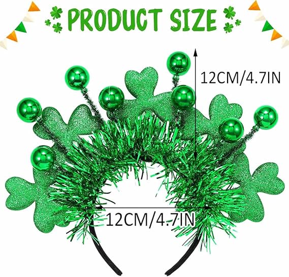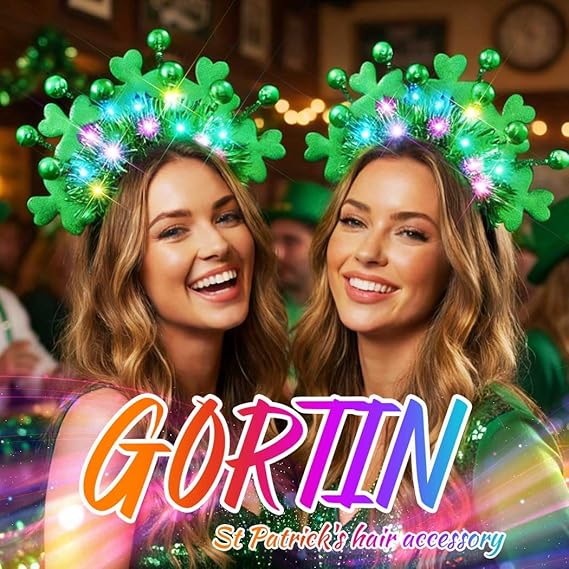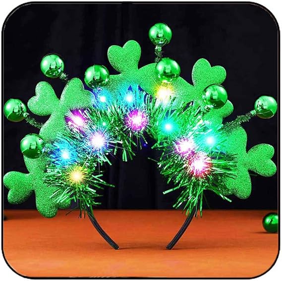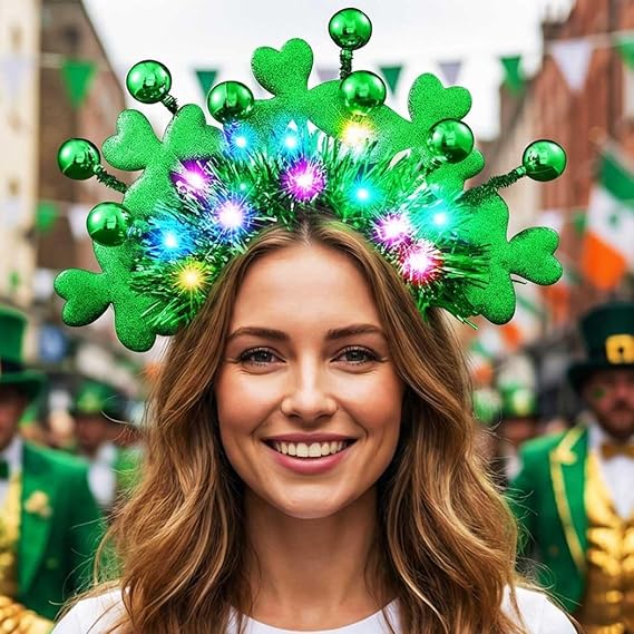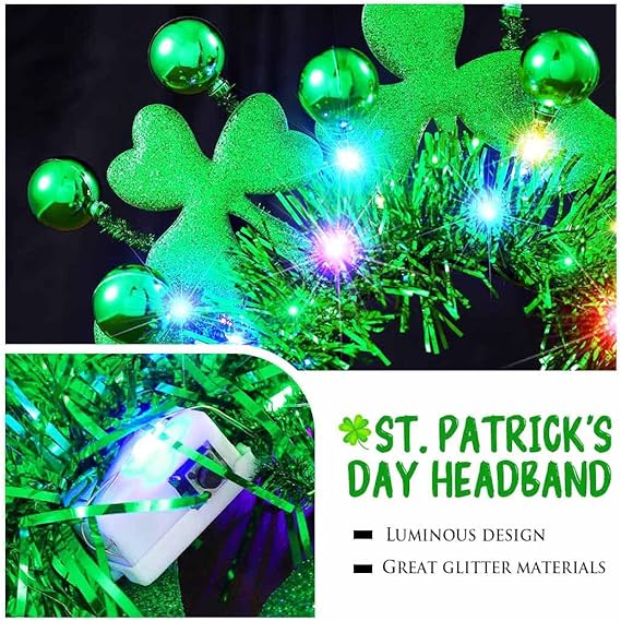 Light Up St Patricks Day Headband LED Shamrock Headpiece Green Ball Hair Band Parade Costume Headwear Irish Day Hair Accessories for Women and Girls