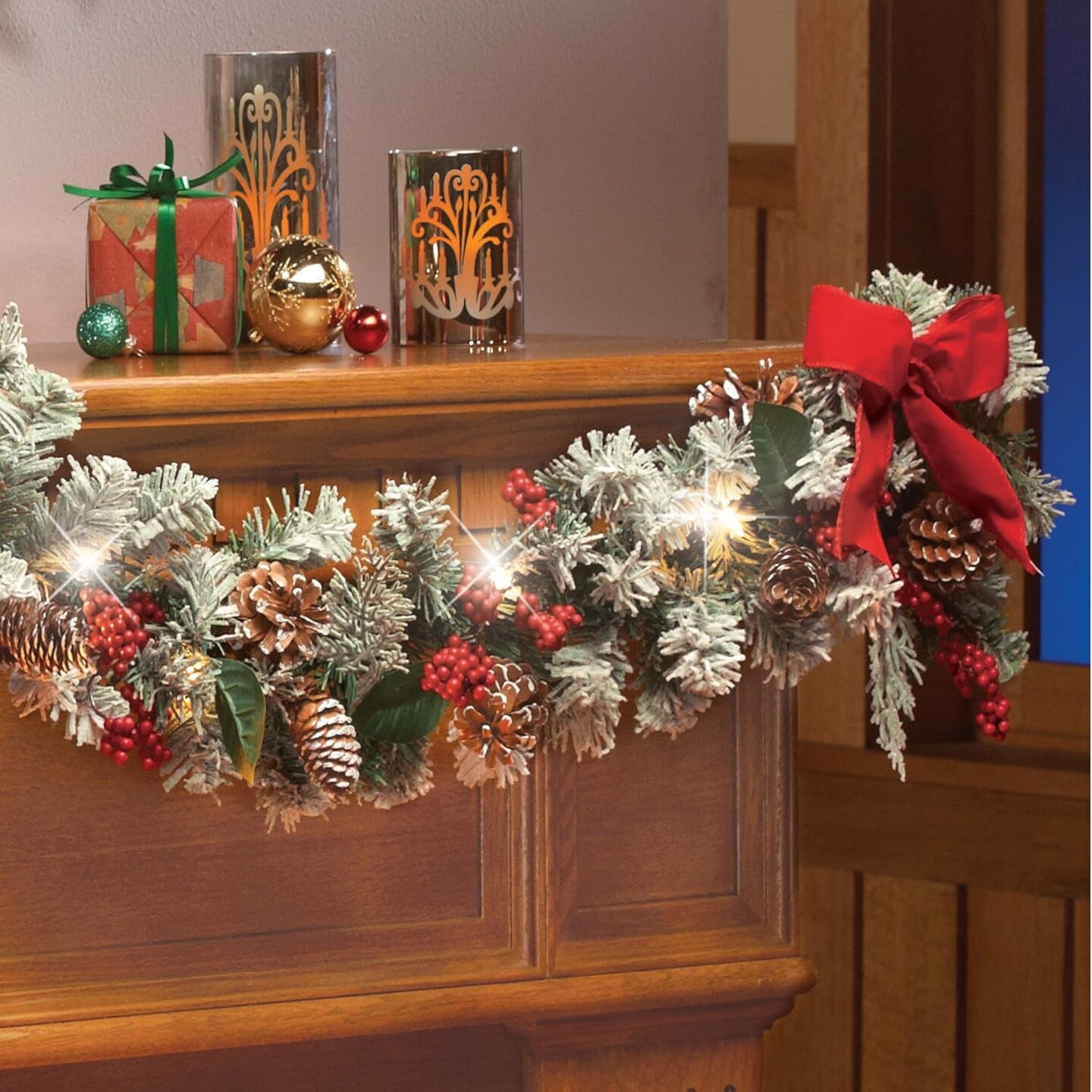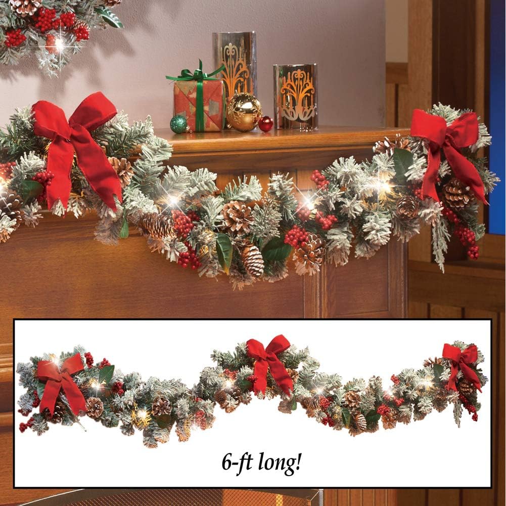 Lighted Christmas Frosted Pine Garland 72 Inches