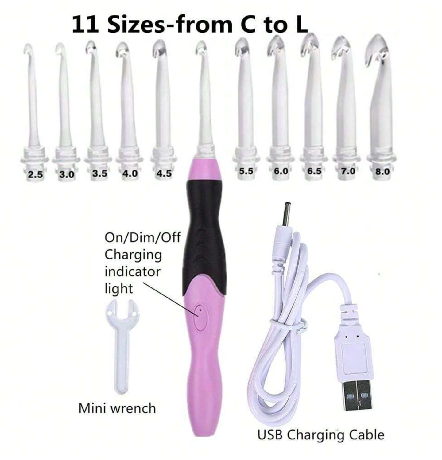 Lighted Crochet Hooks Set - 11 Sizes Light Up Crochet Hooks With Case, Rechargeable Crochet Hook With Light,2.5mm To 8mm