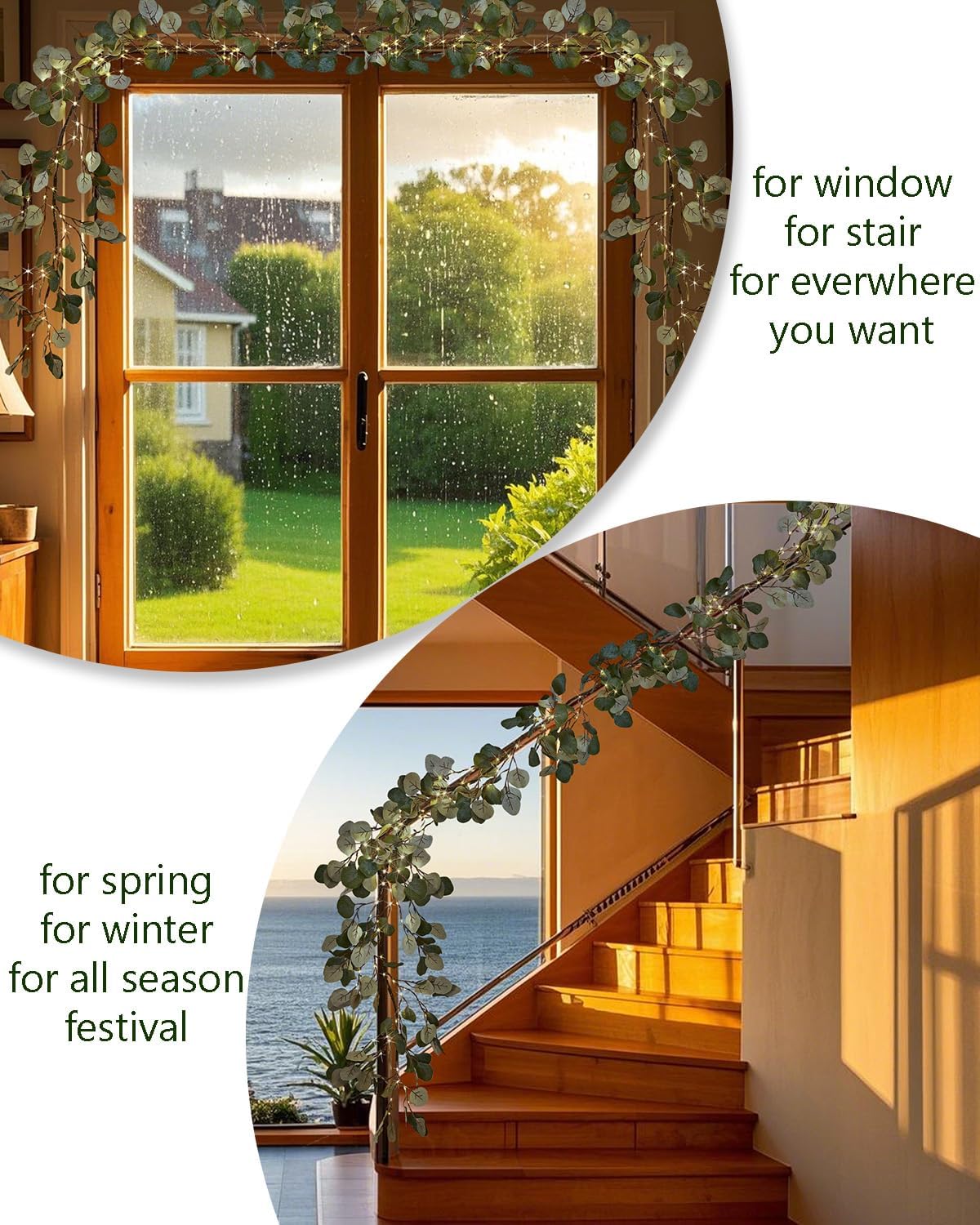 Lighted Twig Eucalyptus Garland 6FT 96 Warm White LED Battery Operated