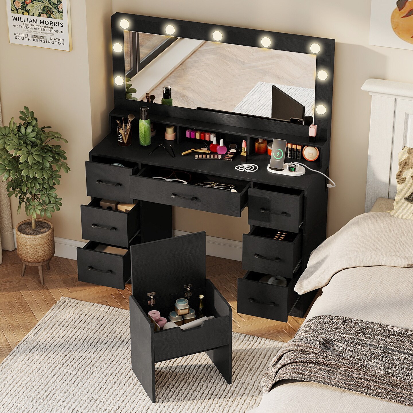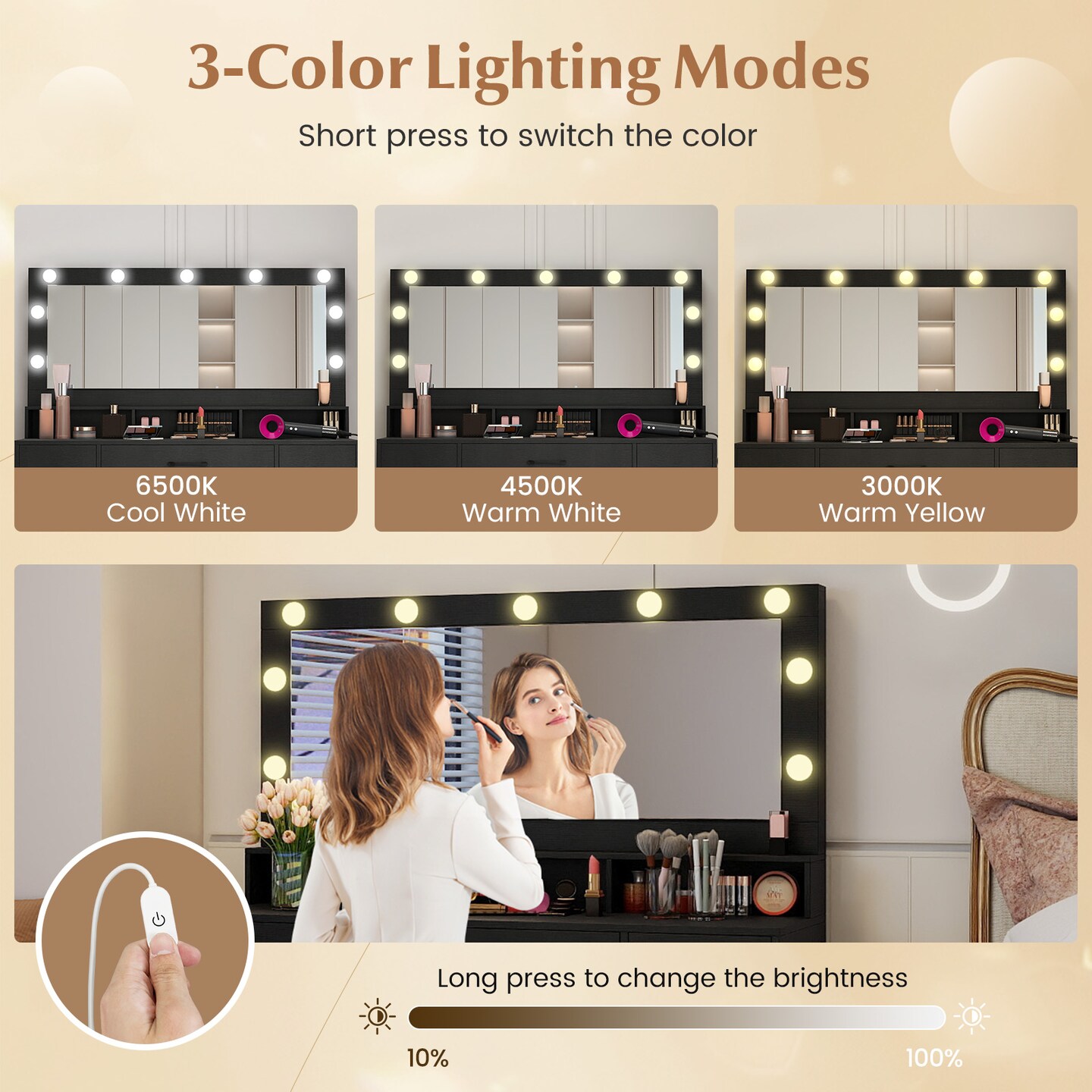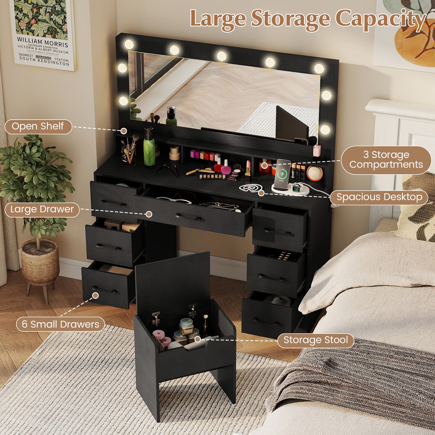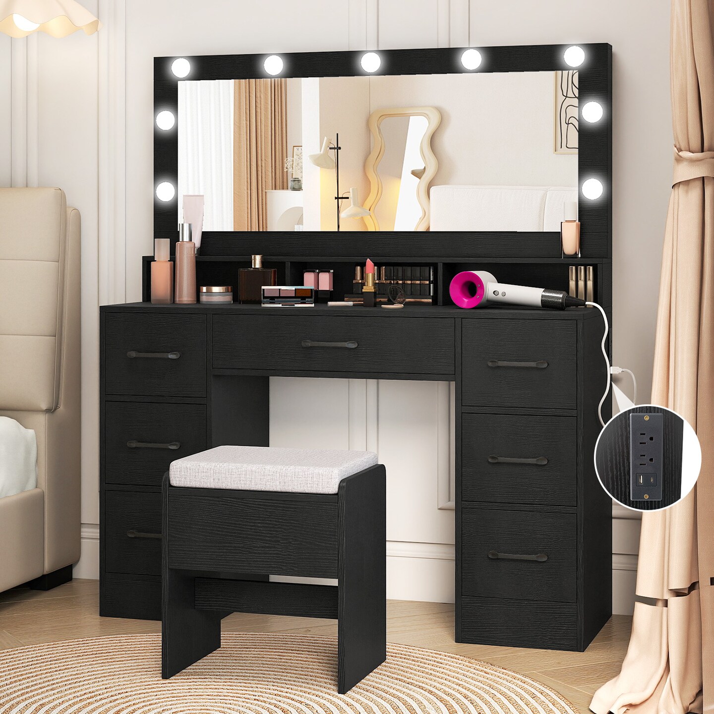 Lighted Vanity Desk with Mirror and Power Outlets for Makeup