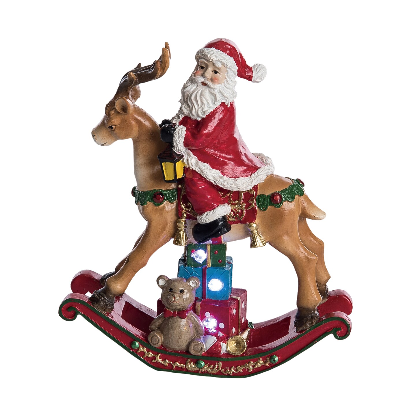Light-up Santa on Deer Figurine Multicolor Christmas Decor
