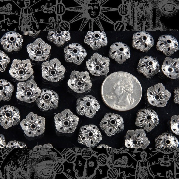 Lightweight Silver Flower 15mm Bead Caps - 50 (or more) - CAP-S1