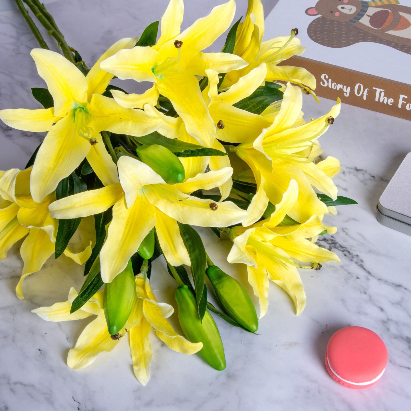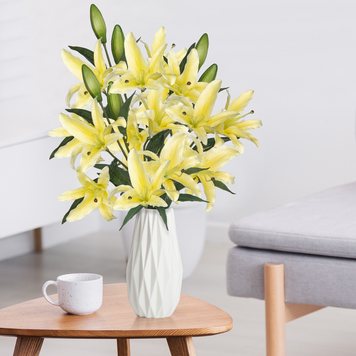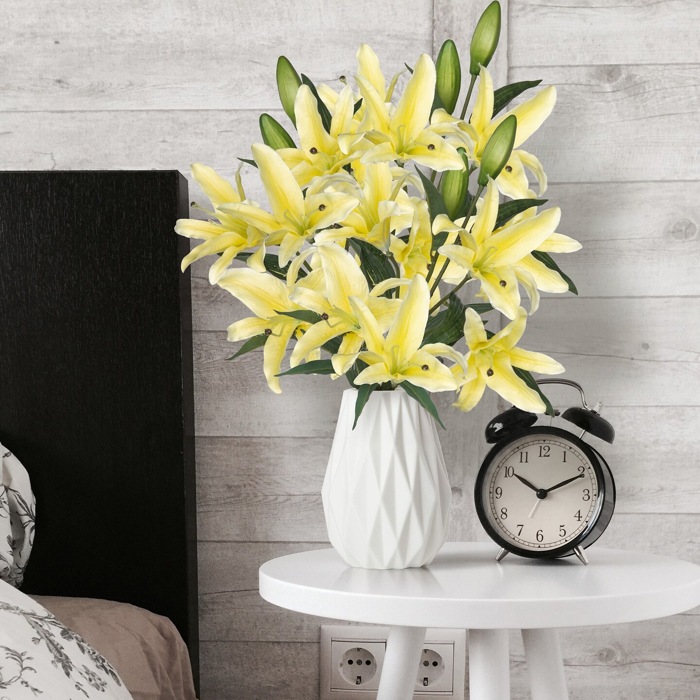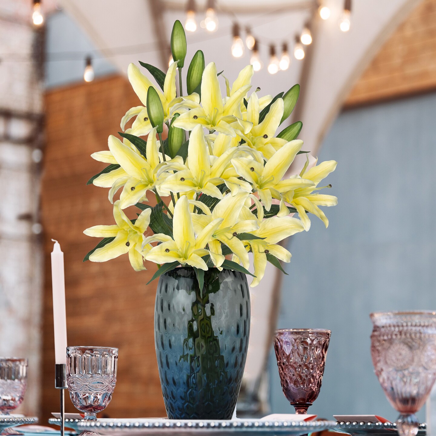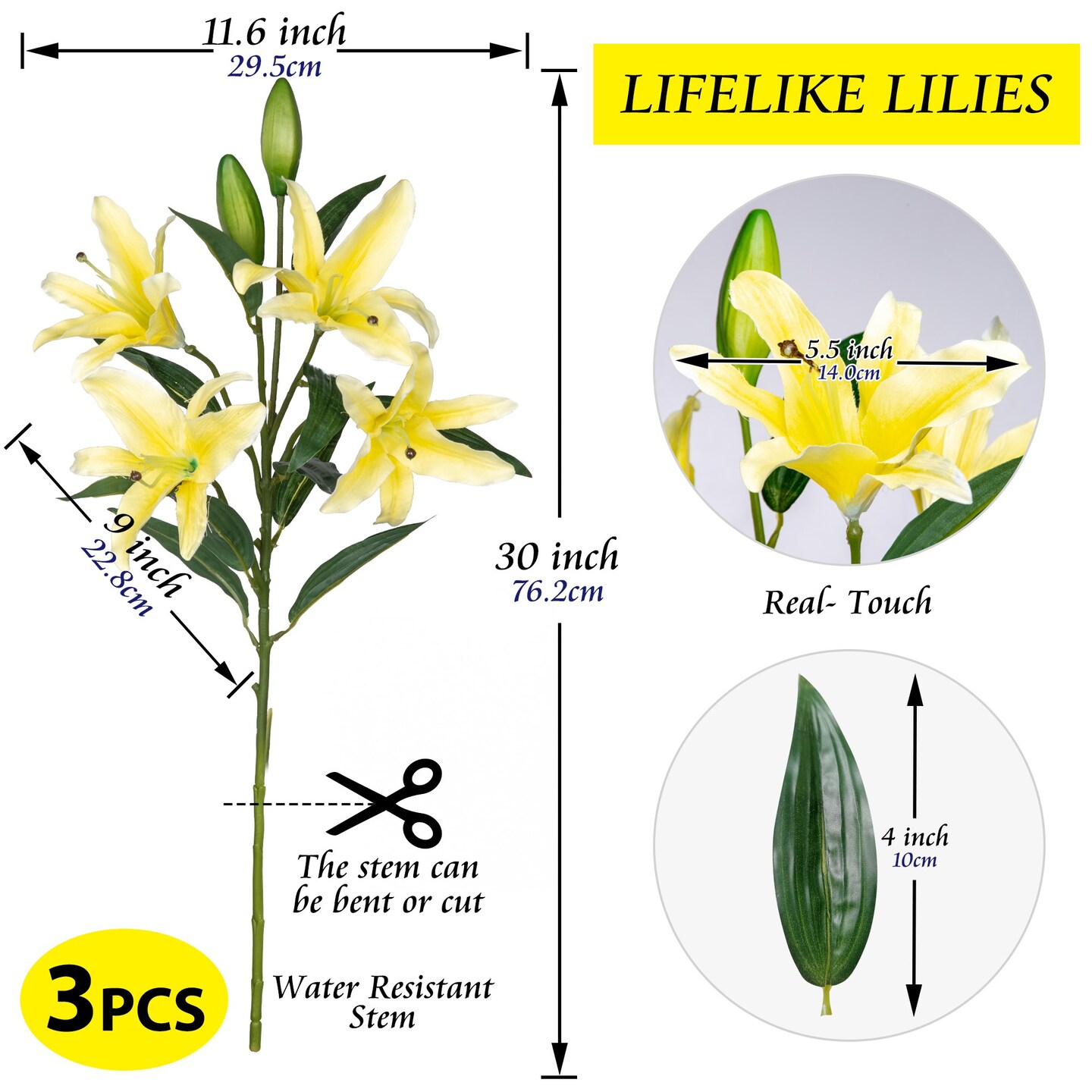 Lily Artificial Flowers Bulk 30” Long Stems 12 Silk Flower Heads Bouquet, Wedding Decoration Office DIY Indoor Home Decor Mothers Day Gift, 3pcs