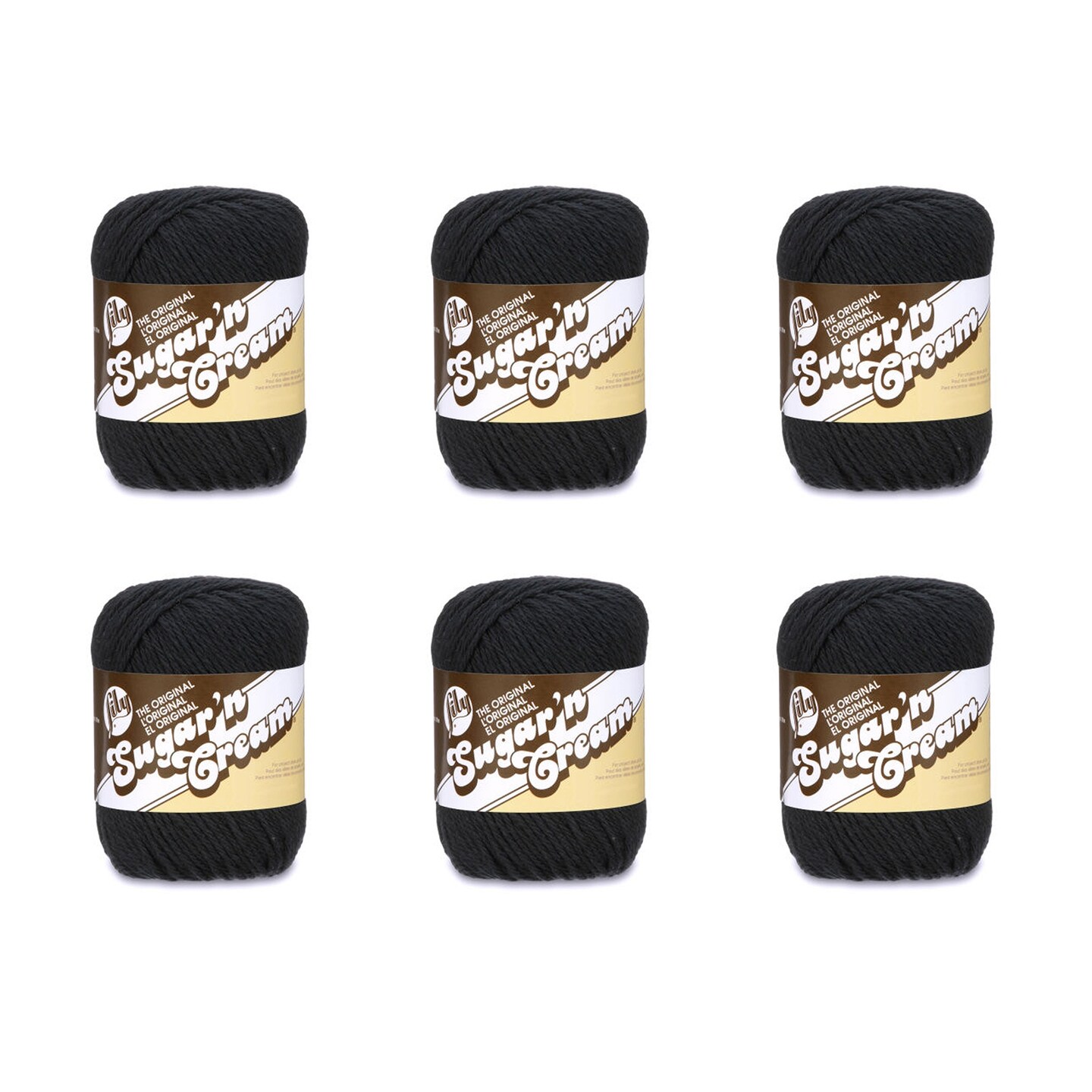Lily Sugar'N Cream Black Yarn - 6 Pack of 71g/2.5oz - Cotton - 4 Medium (Worsted) - 120 Yards - Knitting/Crochet