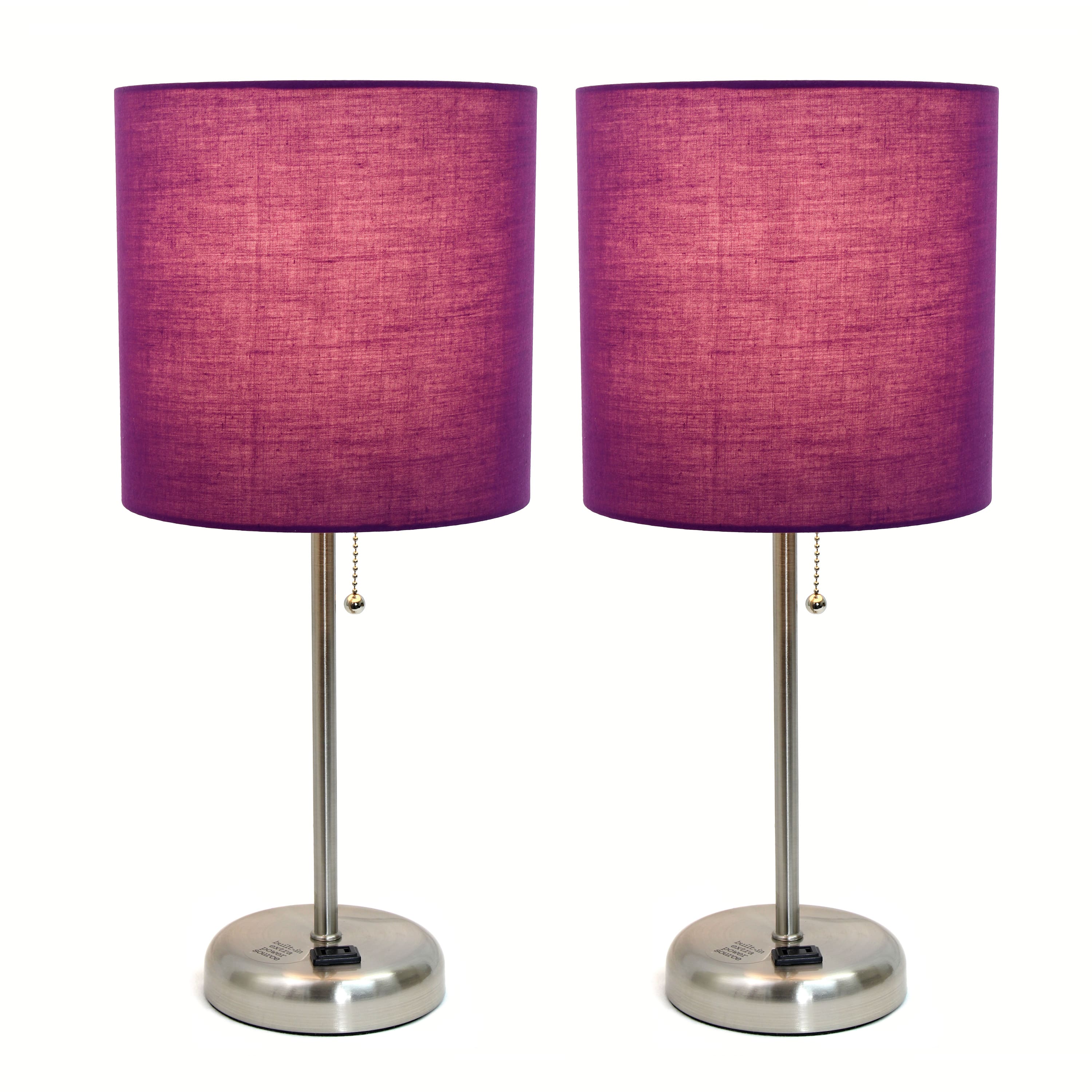 LimeLights 19.5" Brushed Steel Base Lamps with Charging Outlets, 2ct.