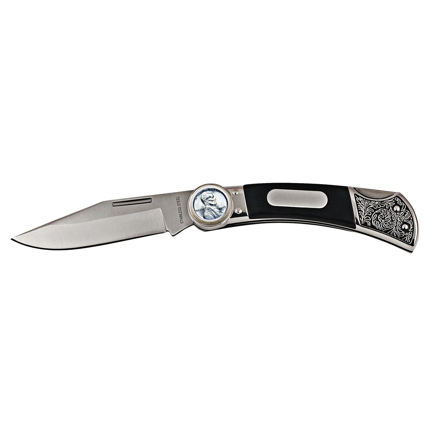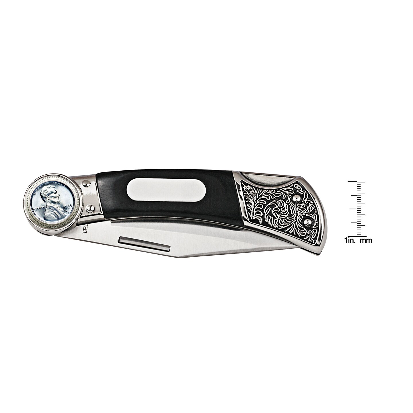 Lincoln Steel Penny Wood Pocket Knife With Engravable Plate