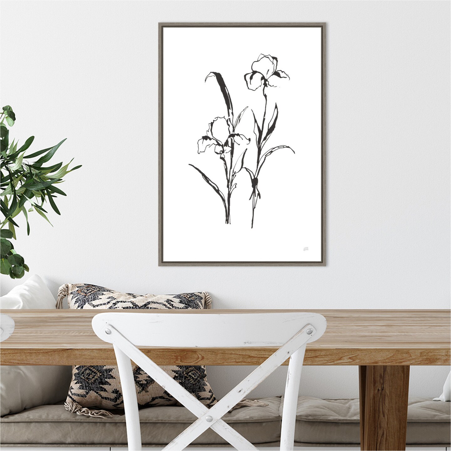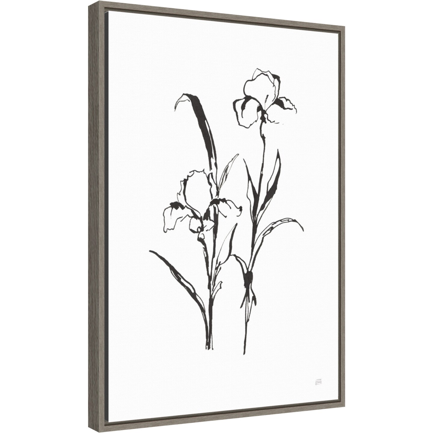 Line Iris Flower I by Chris Paschke 16-in. W x 23-in. H. Canvas Wall Art Print Framed in Grey