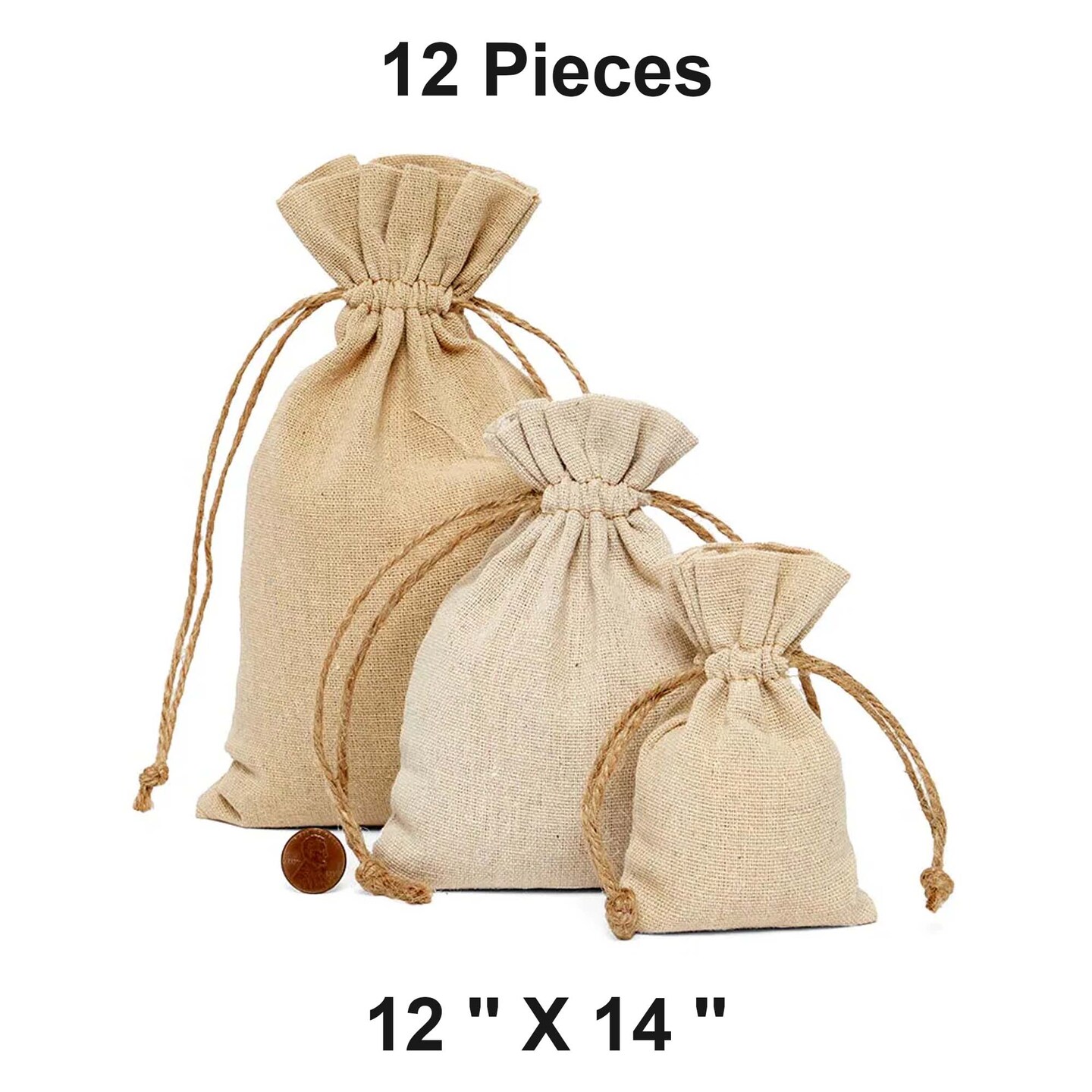 Linen Bag with Hemp Cord 12'' X 14'' Light weight