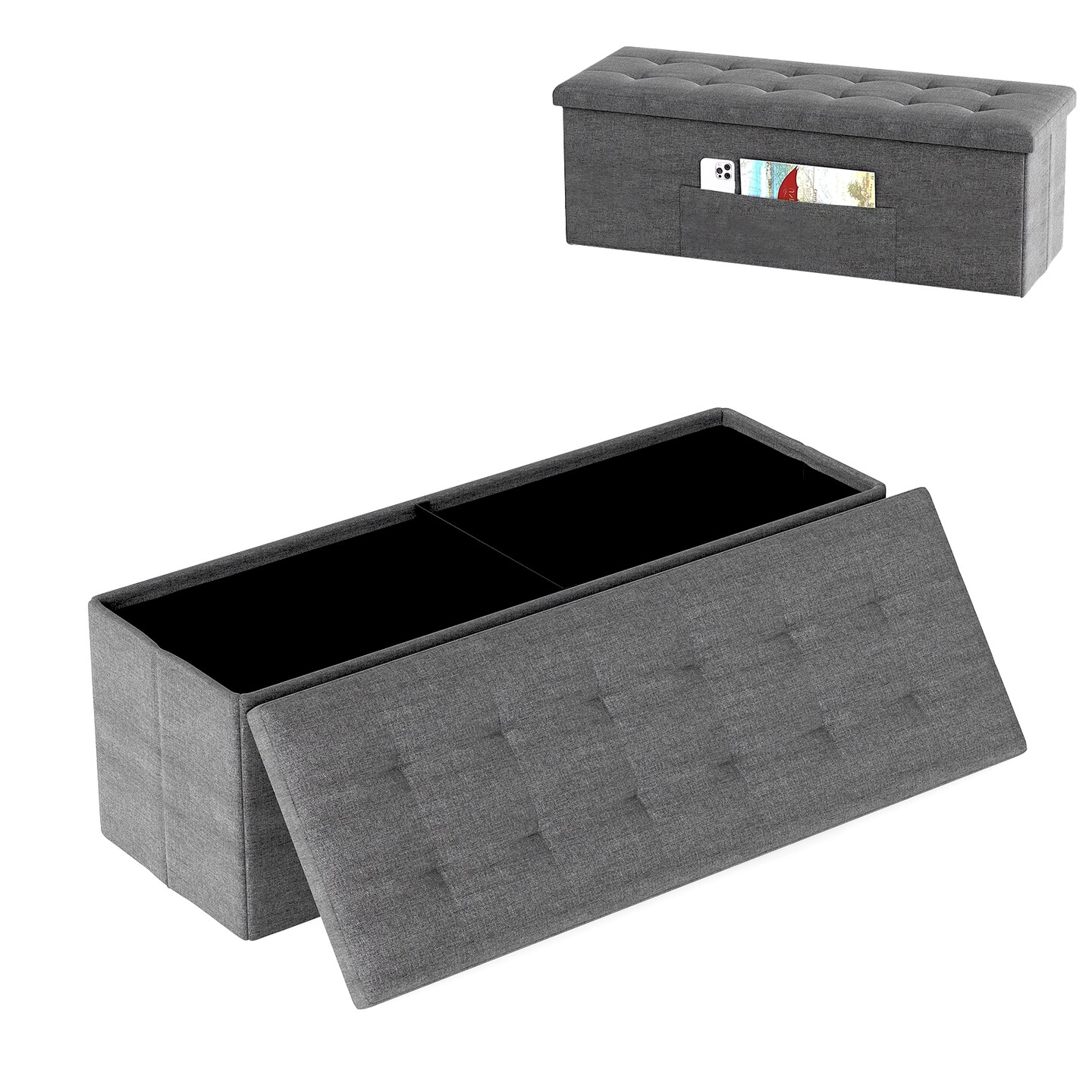 Linen Fabric Storage Ottoman Bench with Folding Design and 38-Gallon Capacity for Seat or Footrest