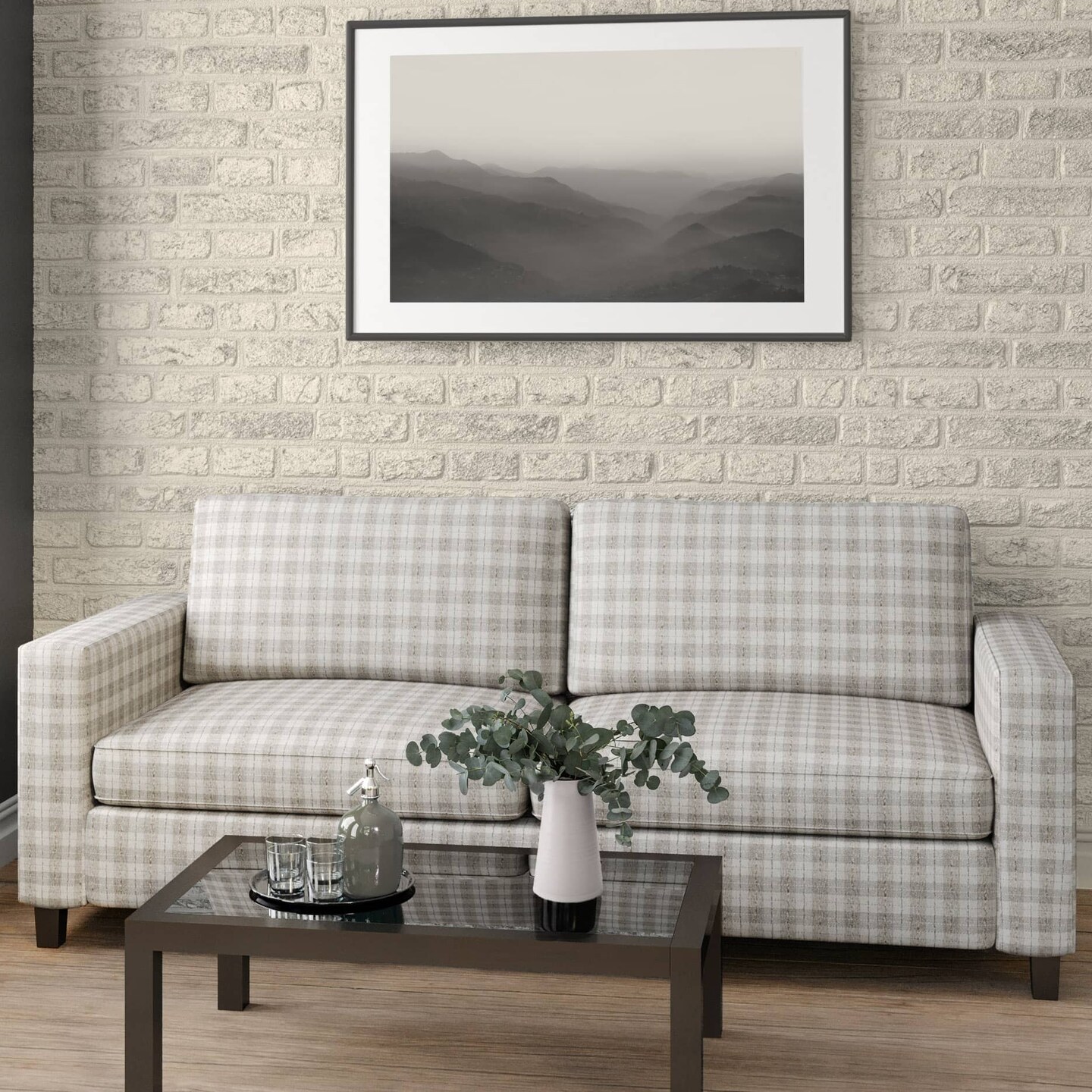 Linen Plaid - Beige & Taupe Plaid Upholstery Fabric 54 Inches"