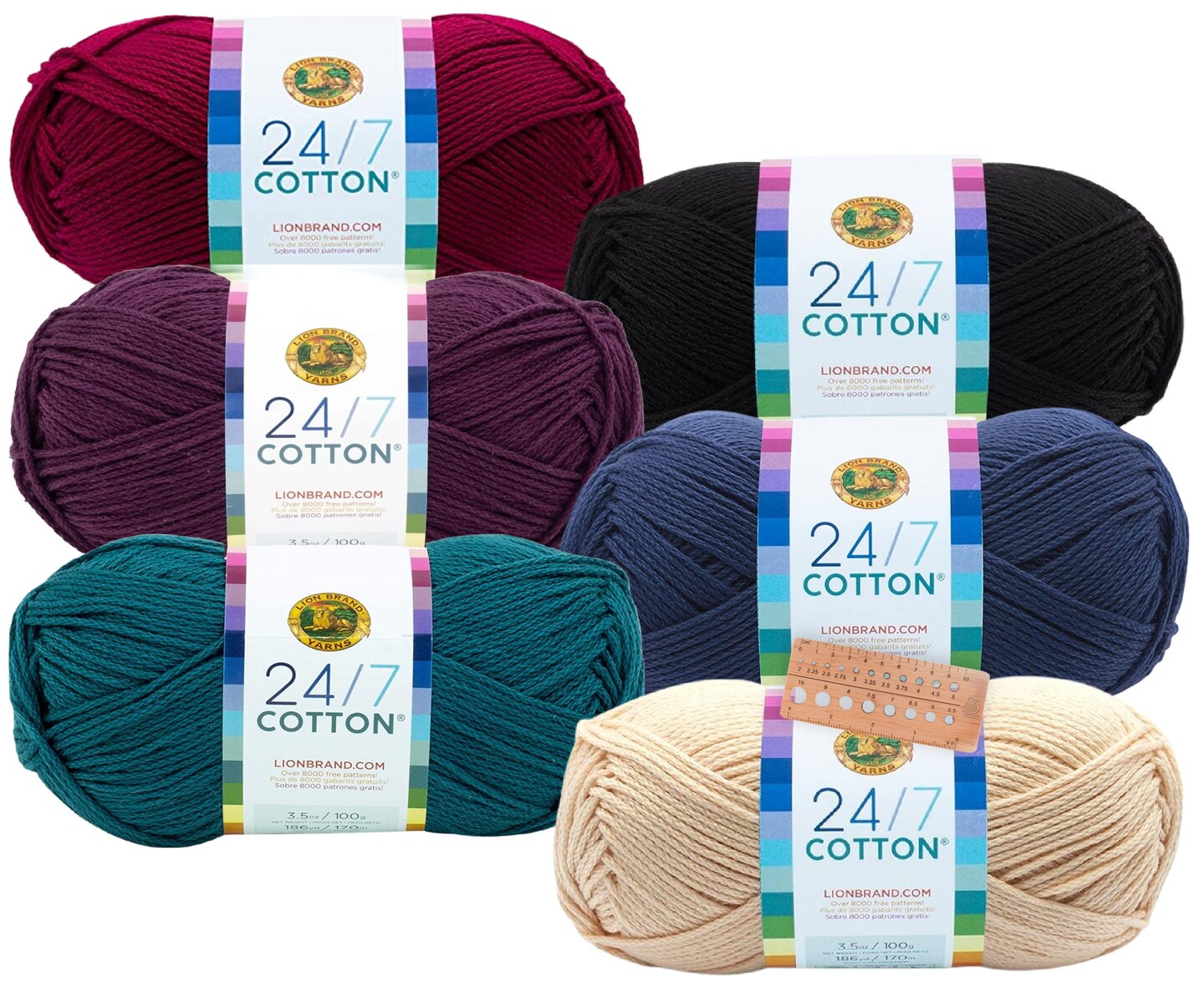 Lion Brand Yarn - 24/7 Cotton - 6 Skein Assortment (Royal)