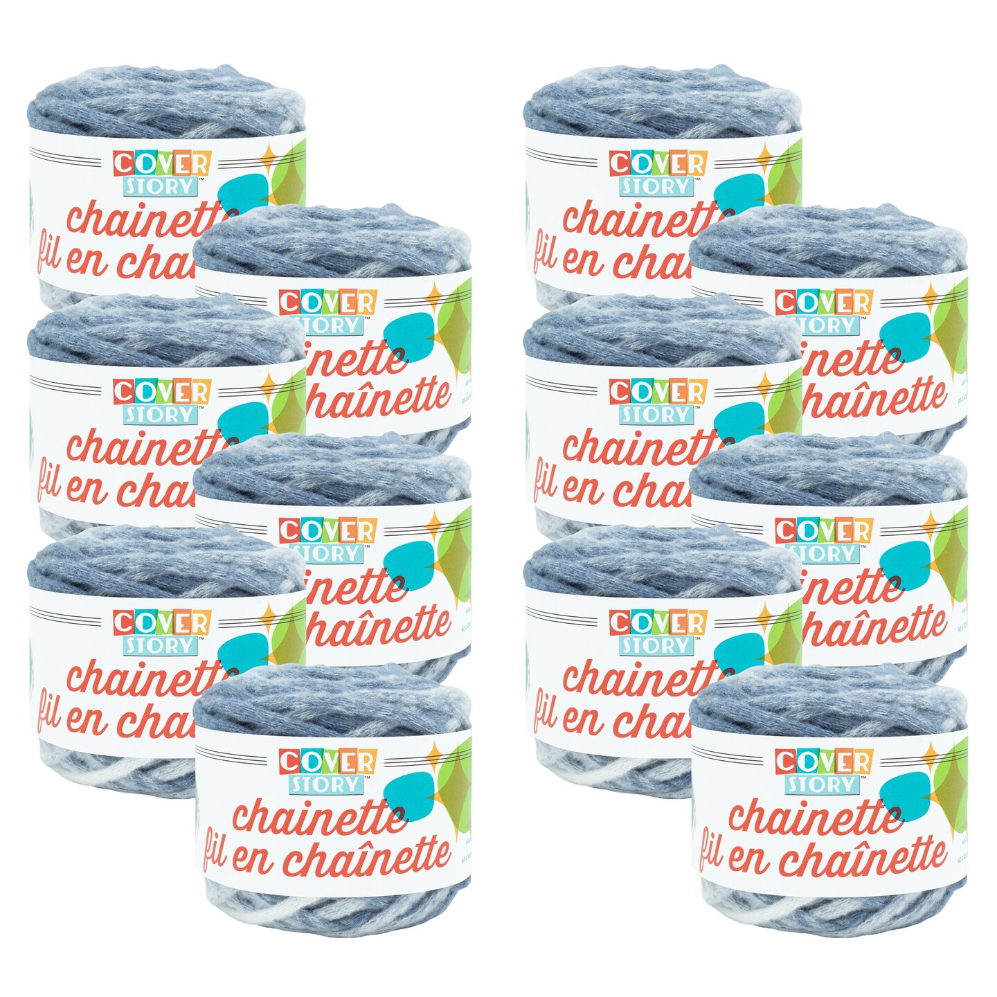 Lion Brand Yarn Cover Story Chainette Faded Denim Super Bulky Polyester Blue Yarn 12 Pack
