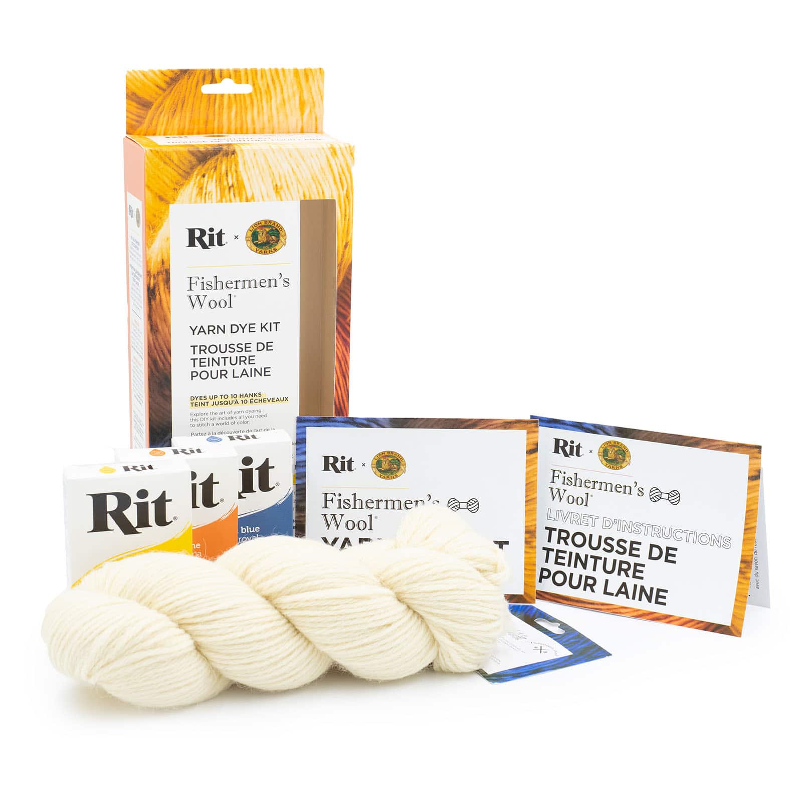 Lion Brand® Yarn Tangerine, Golden Yellow & Blue Fishermen's Wool® Yarn Rit® Kit