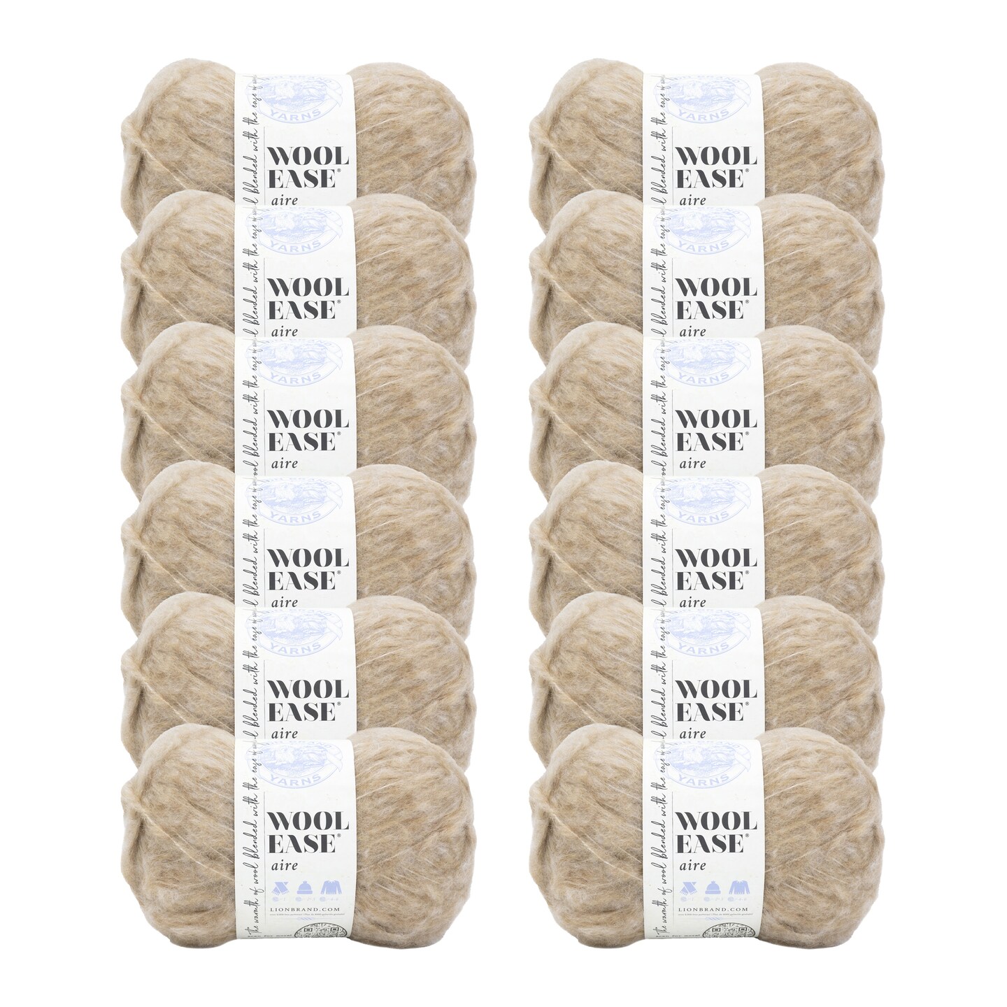 Lion Brand Yarn Wool-Ease Aire Sand Super Bulky Acrylic, Wool, Polyester Brown Yarn 12 Pack