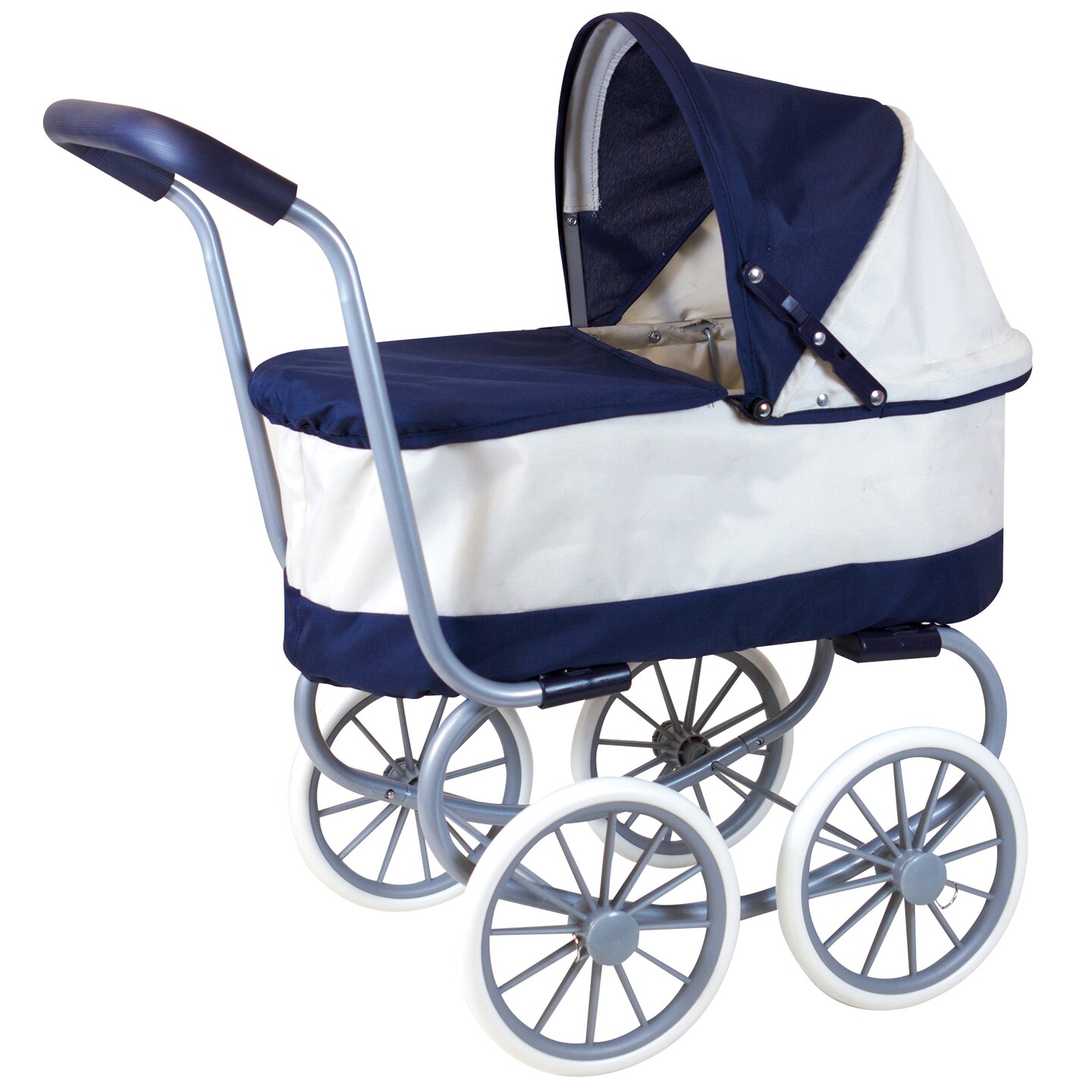 Lissi: Classic Baby Doll Pram - Navy & White - Push Stroller, Adjustable Canopy, Removable Carry Cot & Apron, Doll Accessory Roleplay Toy, Kids 3+