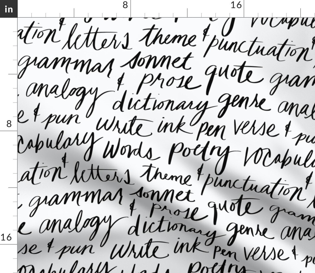 Literary English Words Literature Pen Black White Language Custom Printed Fabric by Spoonflower Various Fabrics by the Yard or Fat Quarter