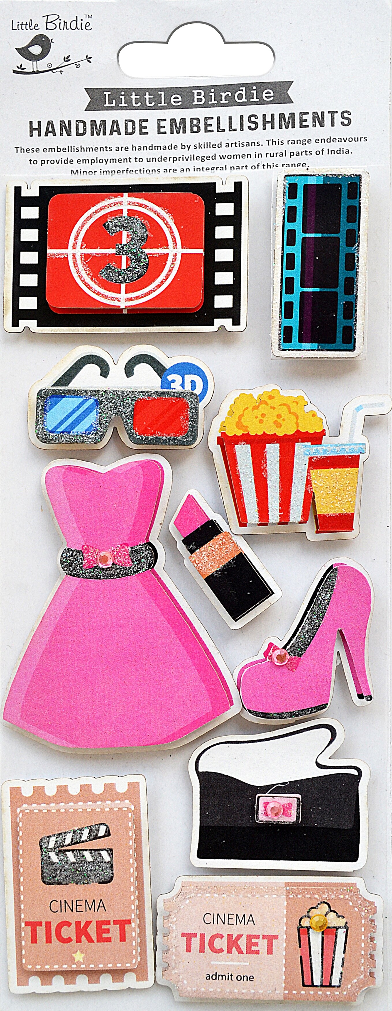 Little Birdie 3D Embellishments 10/Pkg-To The Cinema