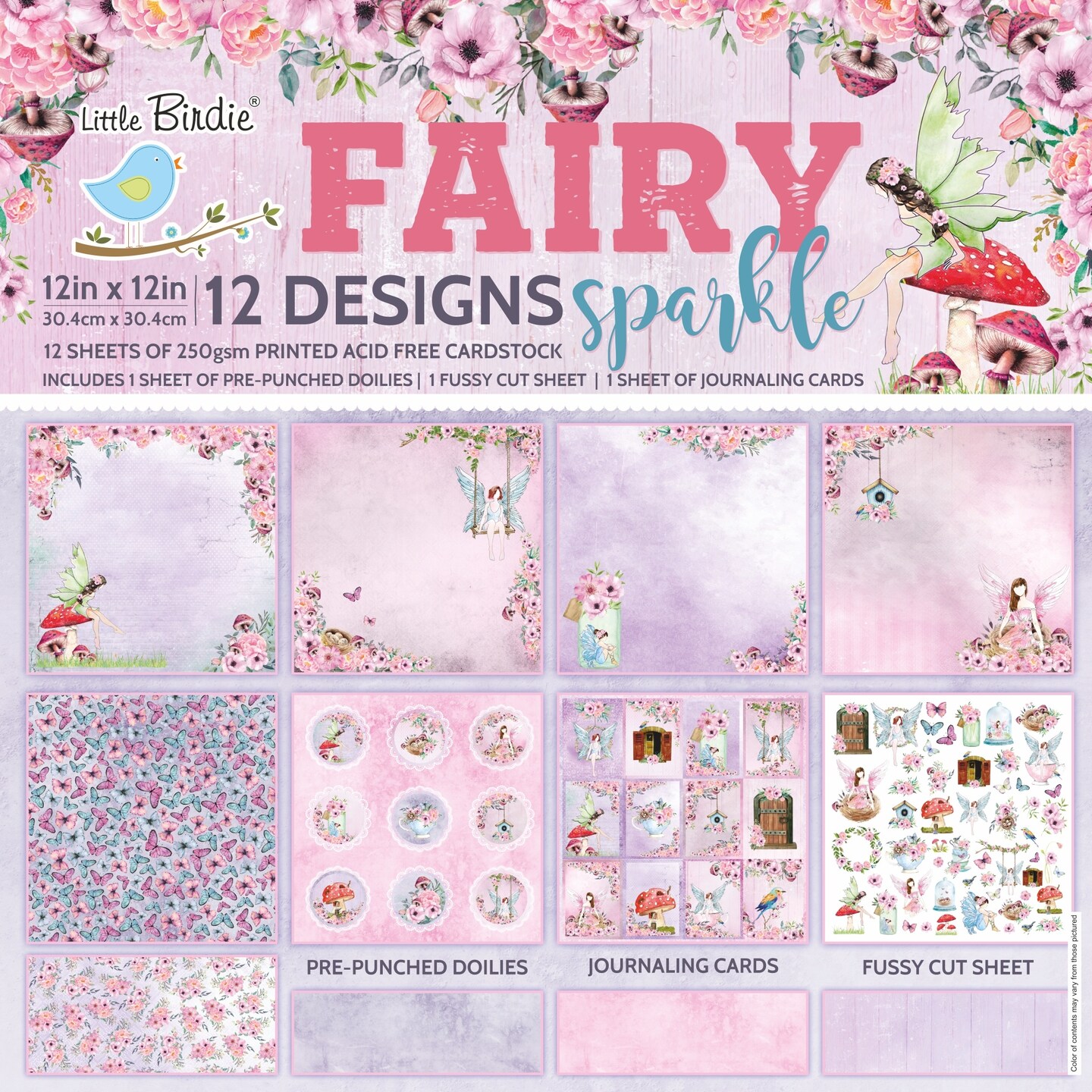 Little Birdie Cardstock Pack 12"X12" 12/Pkg-Fairy Sparkle
