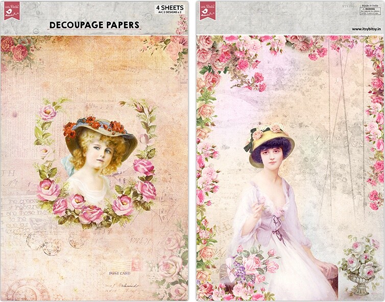 Little Birdie Decoupage Paper A4 4/Pkg-Annabelle