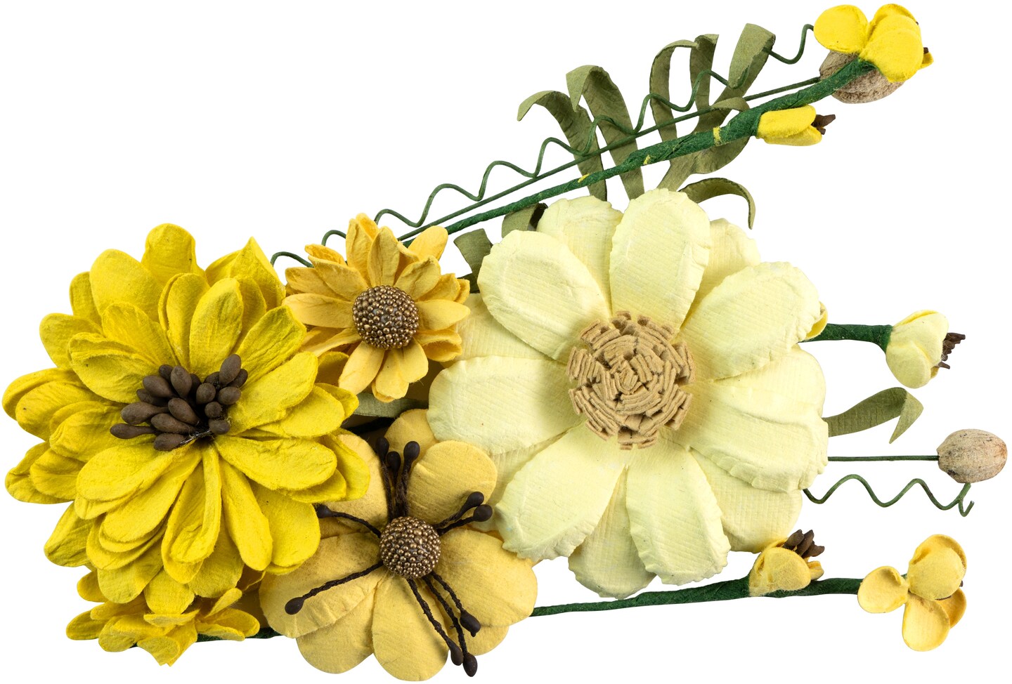 Little Birdie Heleen Paper Flowers 12/Pkg-Sunshine