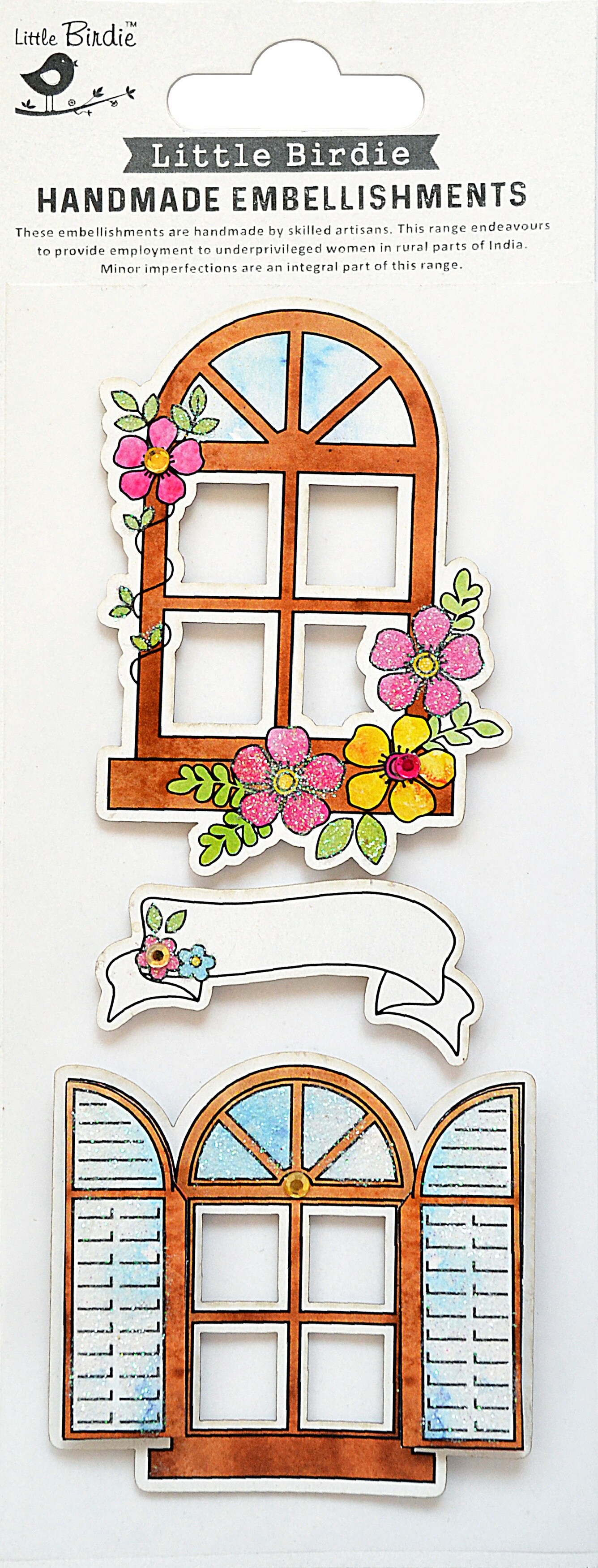 Little Birdie Sticker Embellishment 3/Pkg-Vintage Windows