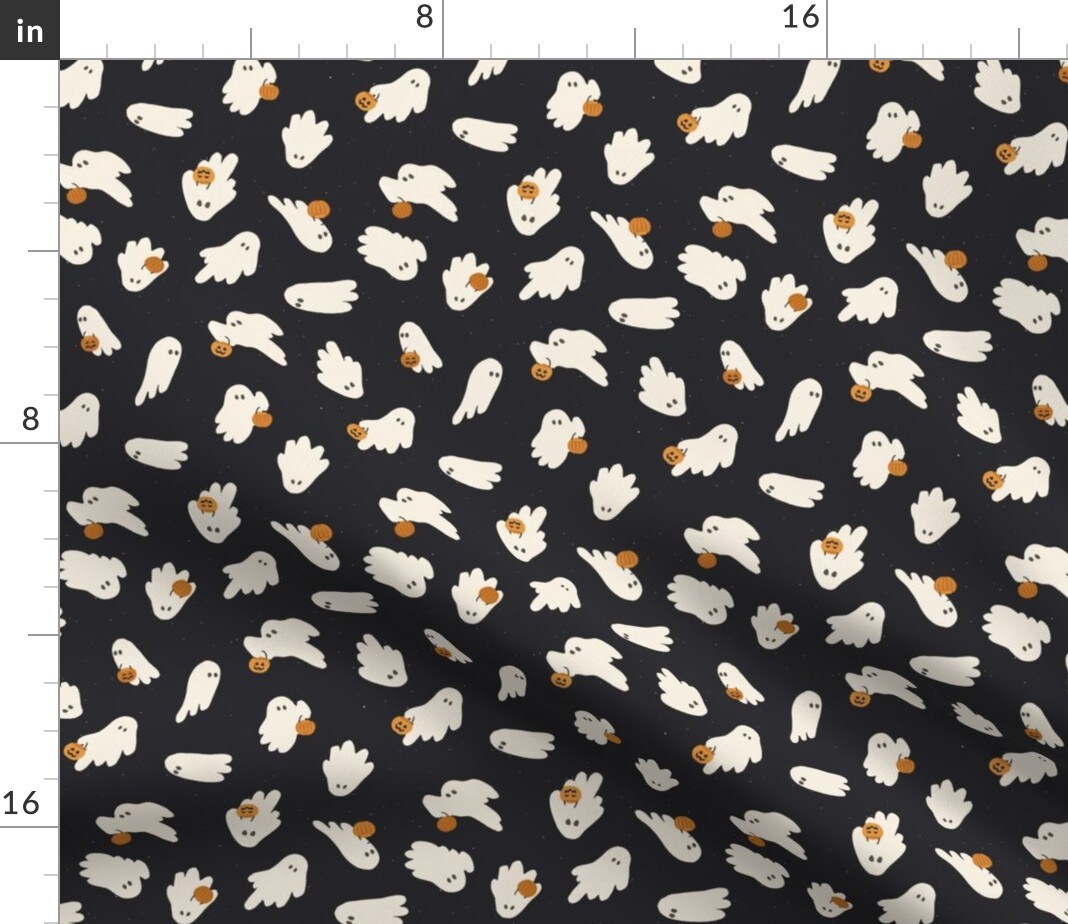 Little Ghost Trick Or Treat Small Scale Charcoal Black Pumpkins Custom Printed Fabric by Spoonflower Various Fabrics by the Yard or Fat Quarter