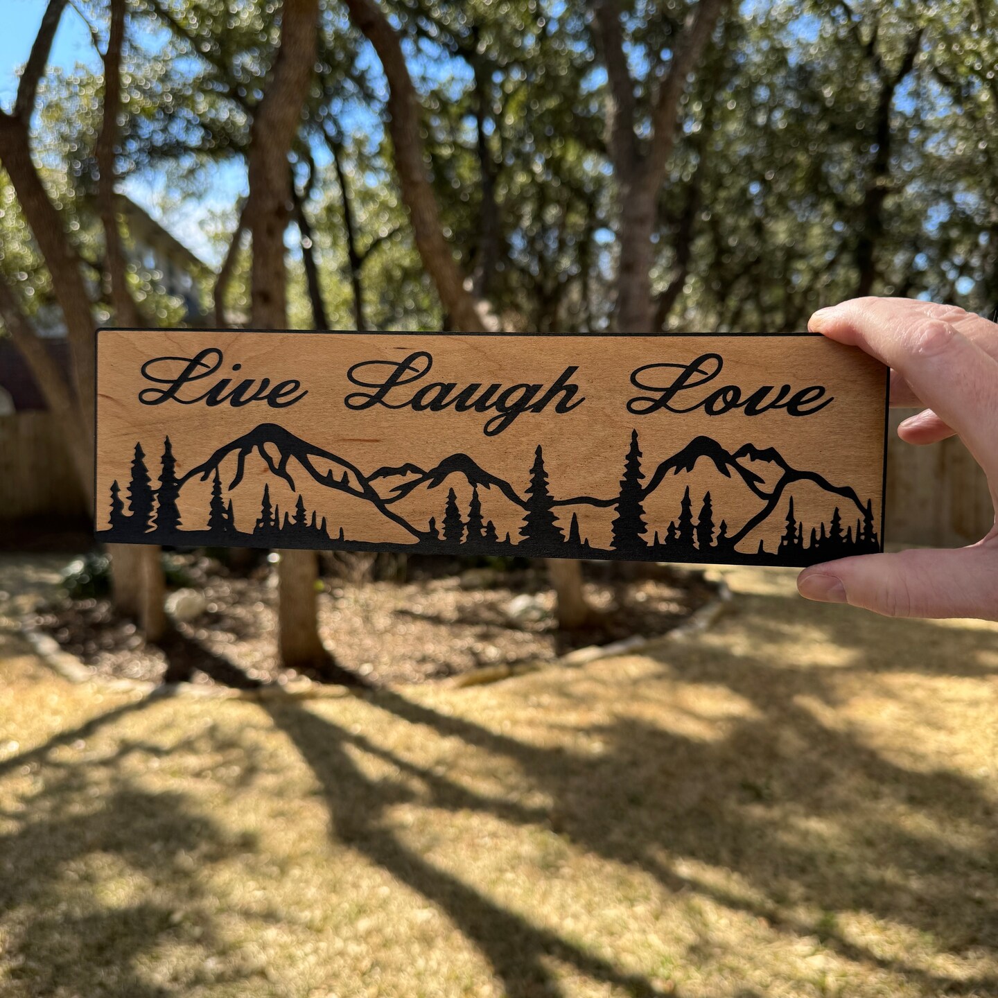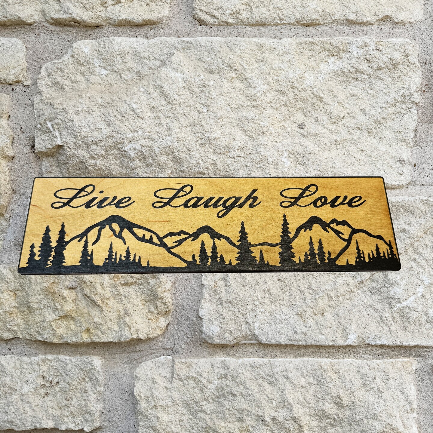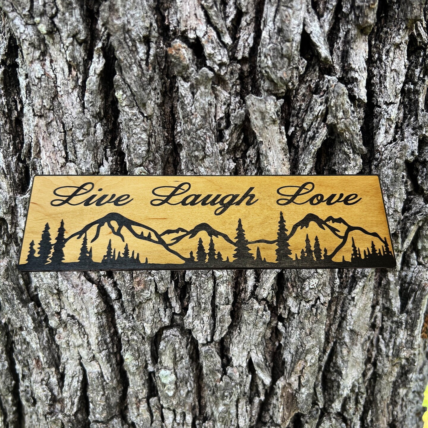 Live Laugh Love Mountain Scene - BLACK Sign 4x12