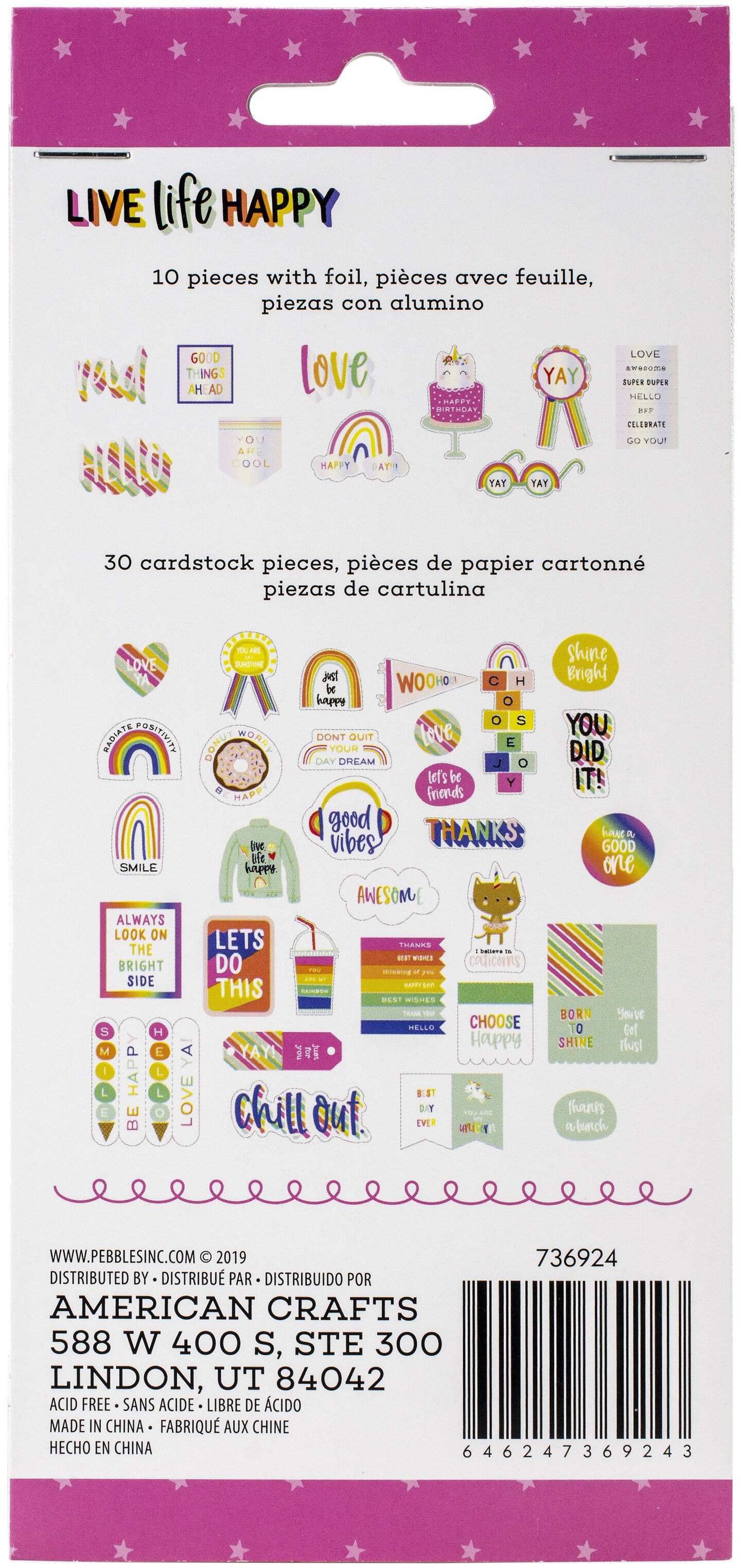 Live Life Happy Ephemera Cardstock Die-Cuts 40/Pkg-Phrase W/Foil Accents