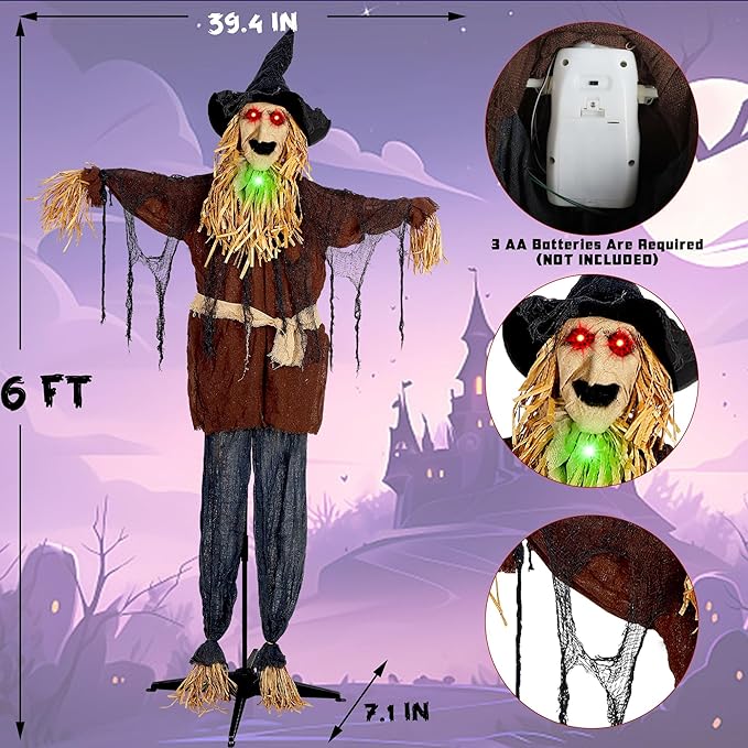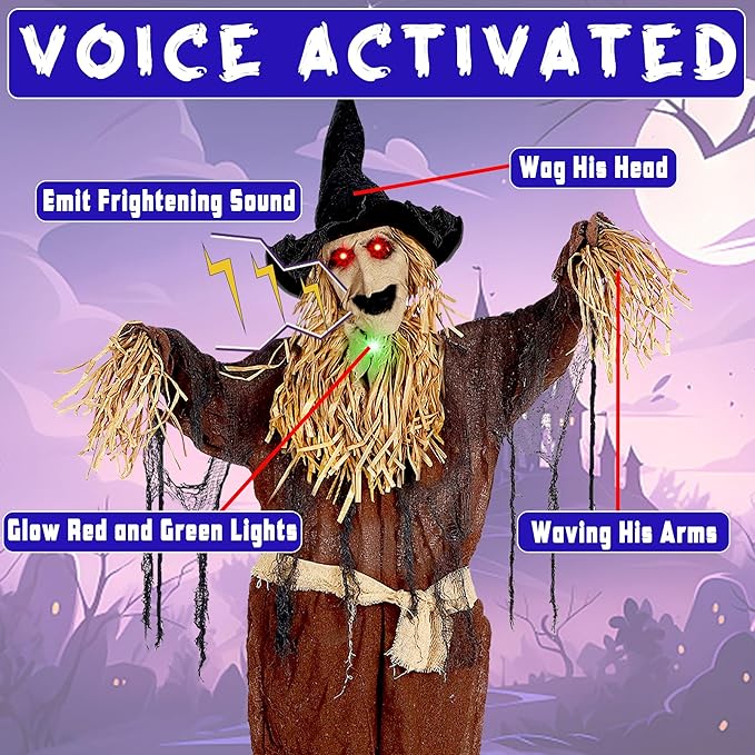 Live-Sized Voice Activated Ghost with Turning Heads, Swing Arms, Red Lighted Eyes & Scary Sound for Haunted House Spooky Party Decorations