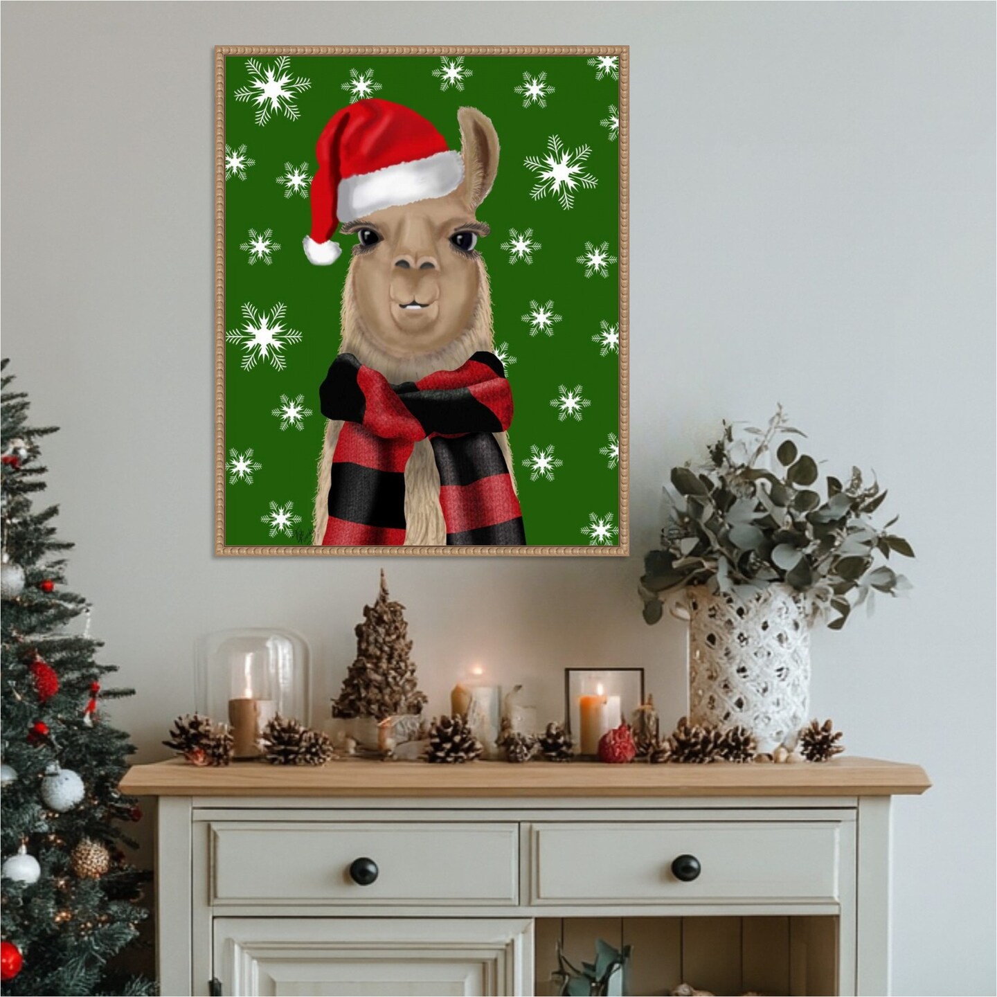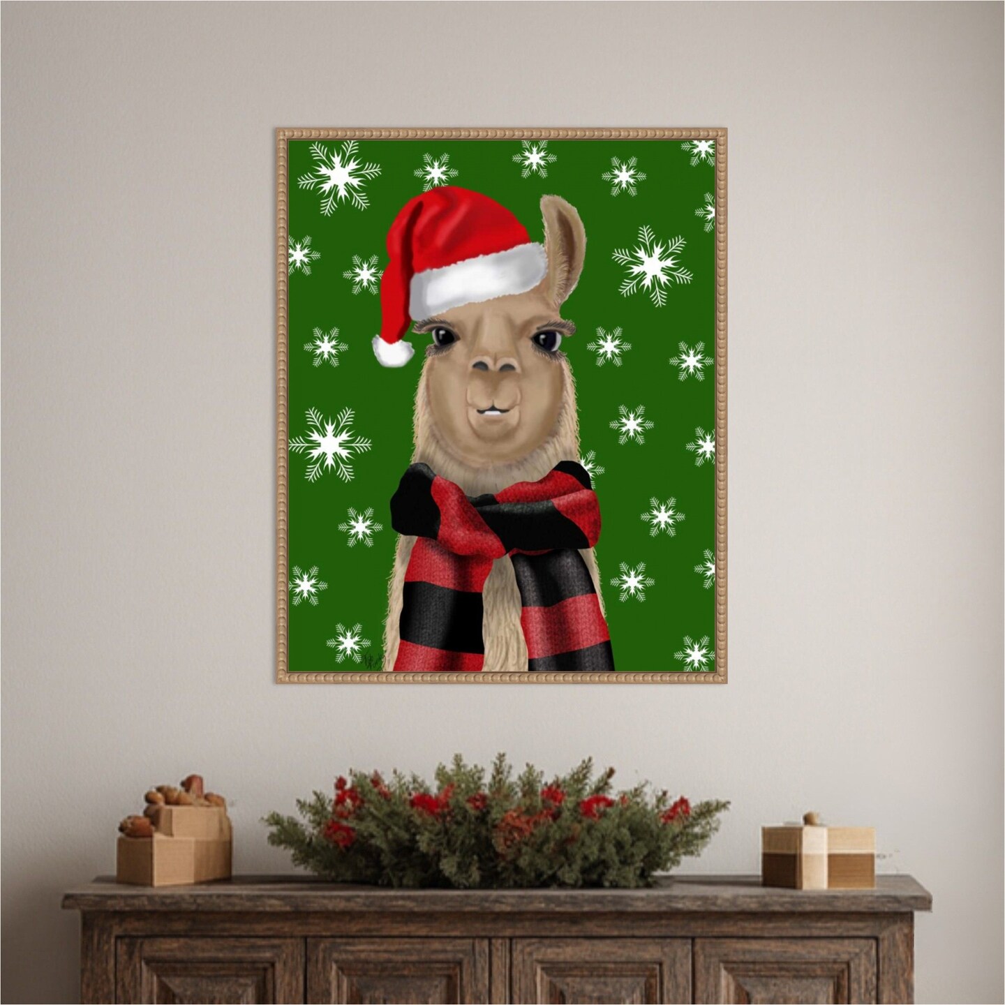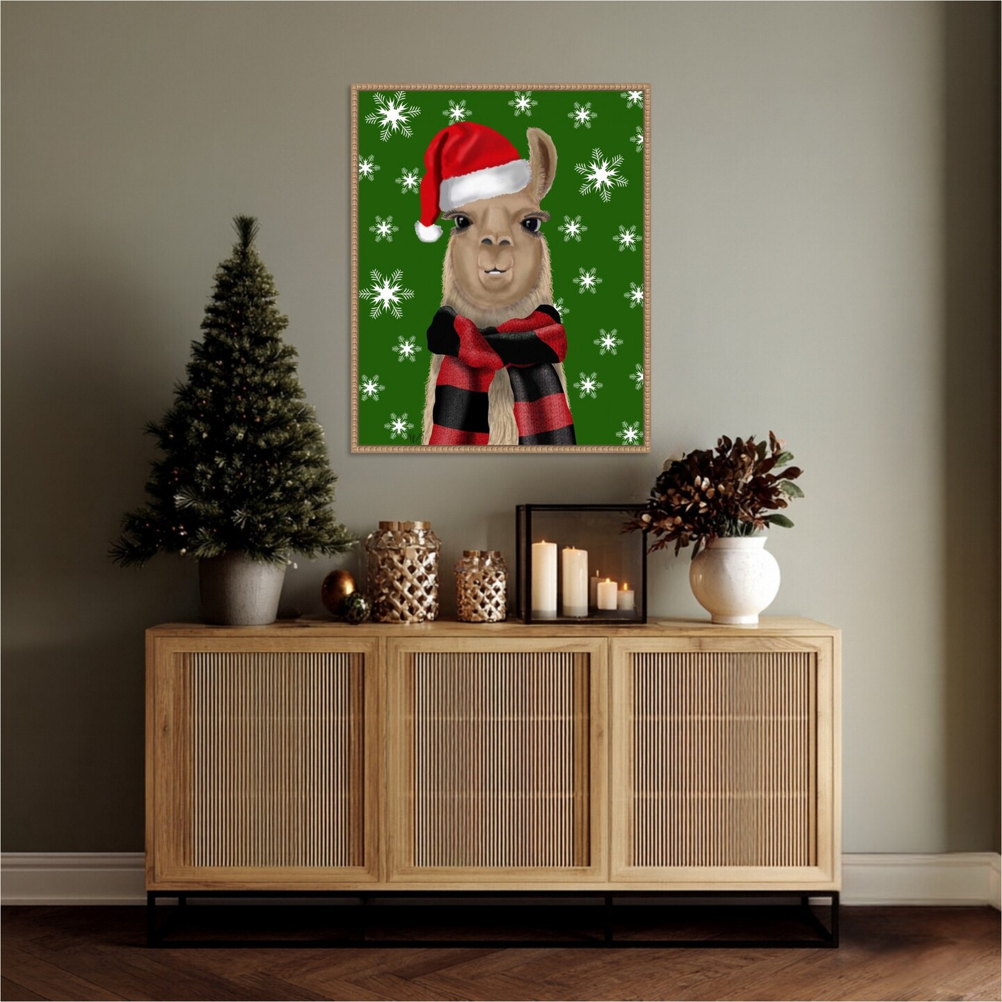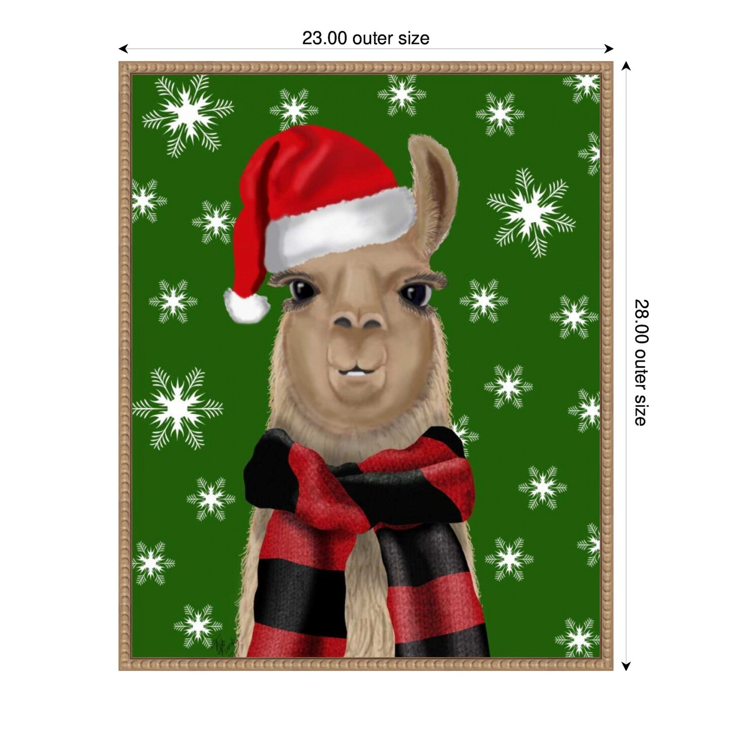Llama Christmas Hat by Fab Funky 23-in. W x 28-in. H. Canvas Wall Art Print Framed