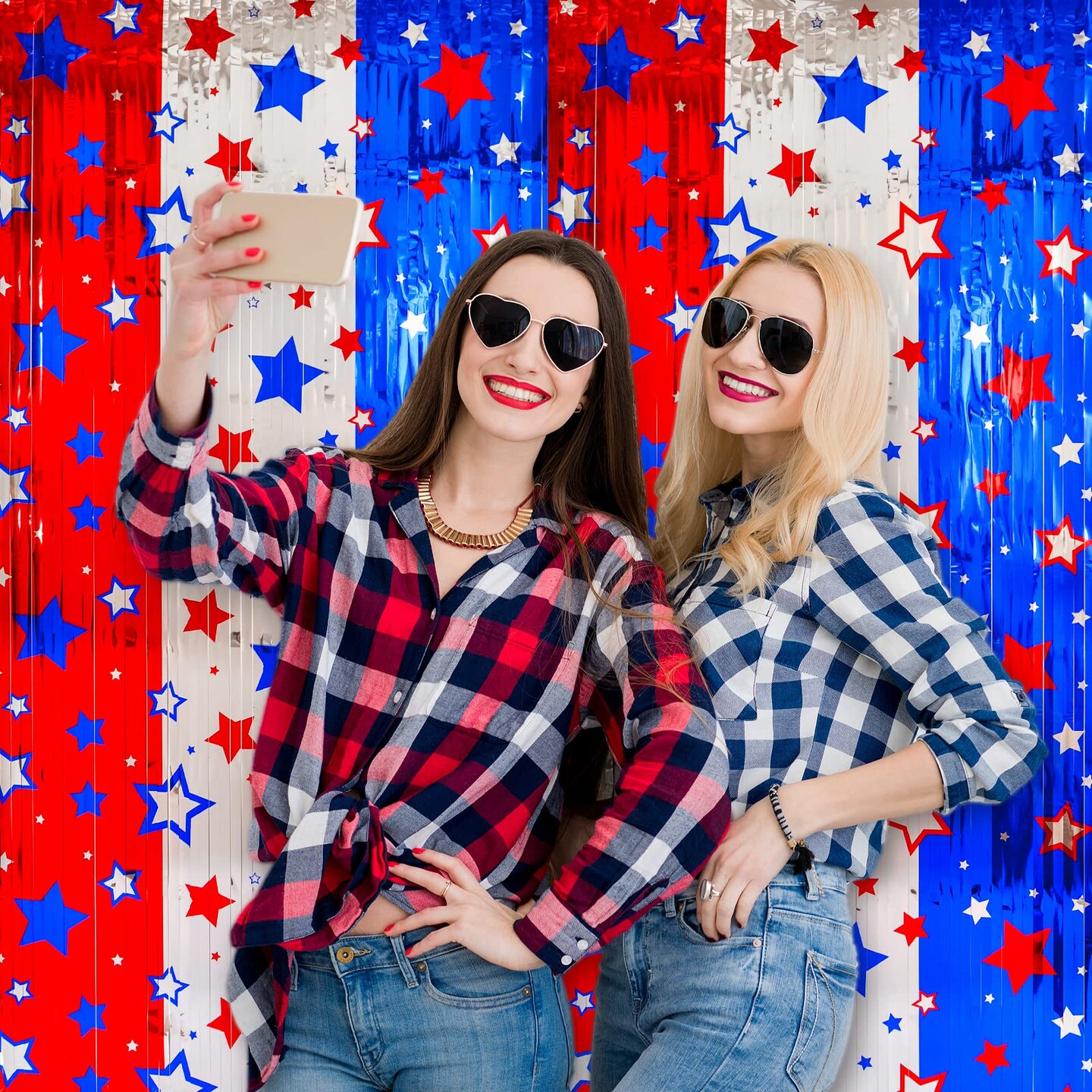 LOLStar 4th of July Decorations, Red White Blue 3 Pack America Star Tinsel Foil Fringe Curtains, Photo Booth Prop Streamer Backdrop for Independence Day, Memorial Day, Labor Day, Patriotic Party
